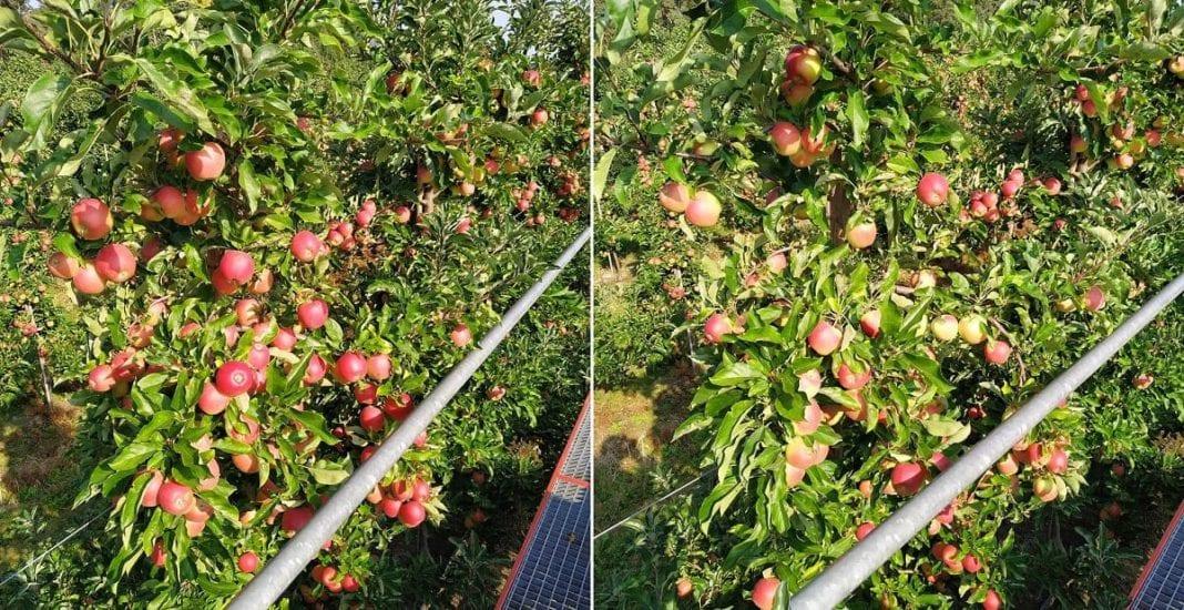 Mówimy tu o nieco większych, półkarłowych podkładkach jak np. P60. Jest to flagowy przykład. Gala ma to do siebie, że w końcowym okresie znacznie nadrasta, jeśli drzewo zostanie pozbawione 30% - 40% owoców. Gdy zdejmiemy taki właśnie odsetek, głównie z górnej części drzewa, pozostałe owoce znacznie lepiej się wybarwiają i rosną.