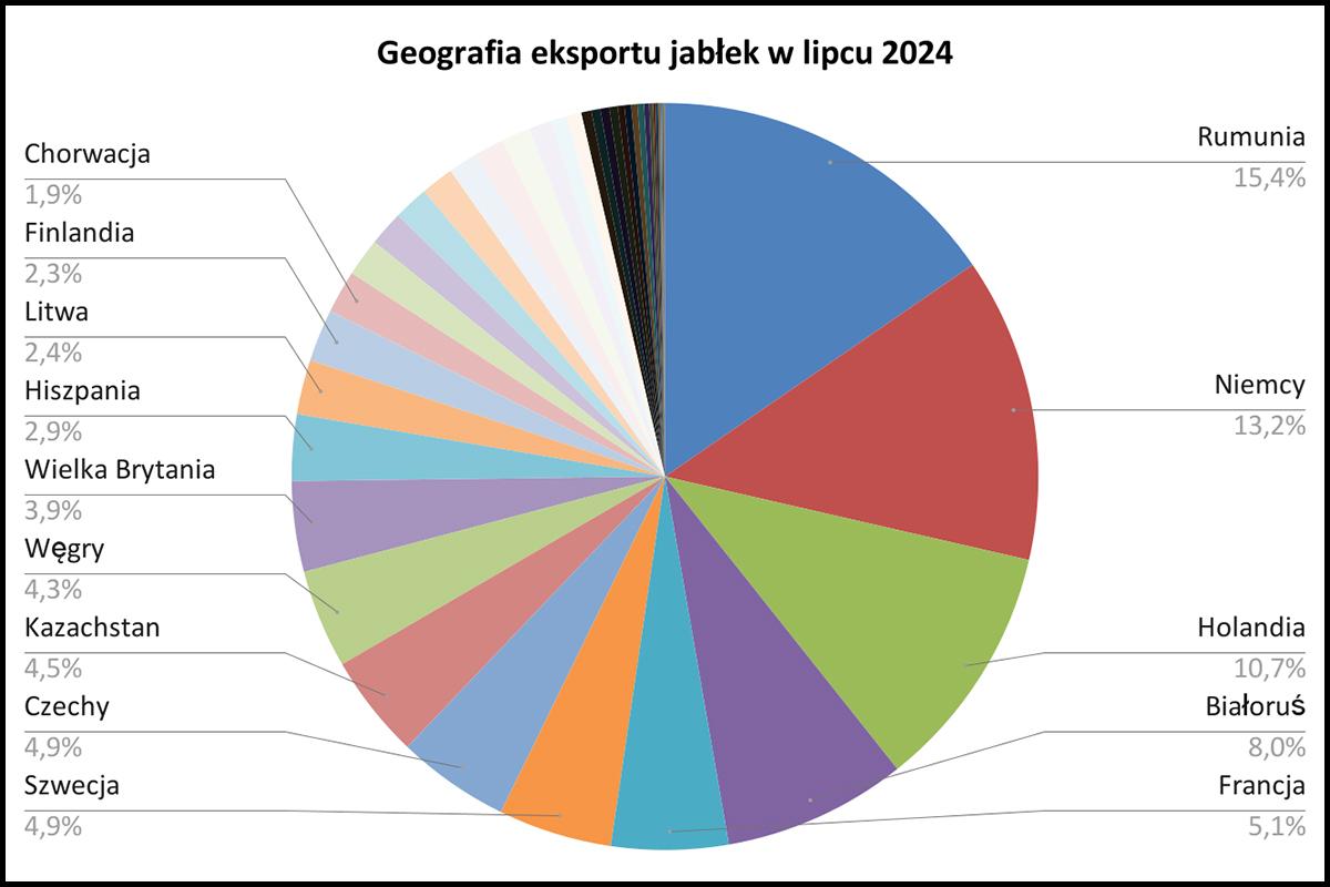 W lipcu polskie jabłka trafiły aż do 42 krajów. Tak szeroka dywersyfikacja kierunków wysyłek jest godna pochwały.