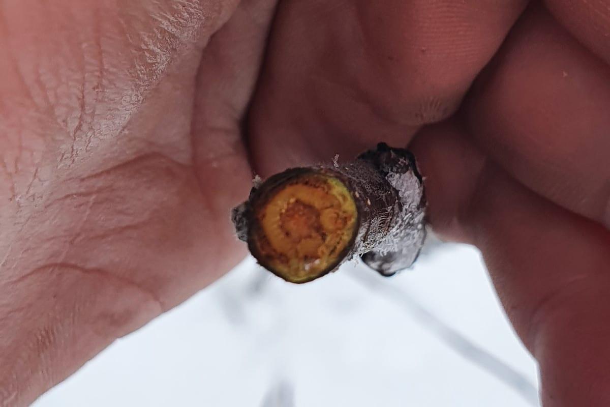Na zdjęciach kwatera Gali Must, posadzona jesienią 2020 roku. Lokalizacja to województwo lubelskie, powiat Kraśnik. W tym rejonie temperatura spadła do -21 stopni Celsjusza, ale nasadzenie znajdowało się na płaskim terenie, bez zastoiska mrozowego. Jak okazuje się po przecięciu przewodników, temperatura doprowadziła do znacznego przemrożenia wiązek przewodzących. Czy drzewka trzeba spisać na straty?
