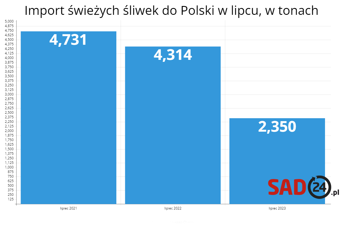 Import świeżych śliwek były w lipcu znacznie mniejszy niż przed rokiem. Porównując dwa poprzednie sezony, był praktycznie o połowę mniejszy. W lipcu, czyli przed zbiorami w Polsce, import z południa powoduje największe „zamieszanie” na rynku. W tym roku nie notowaliśmy tego aż w takiej skali, jednak importerzy nie próżnowali jeśli chodzi o pierwsze dostawy z Serbii.