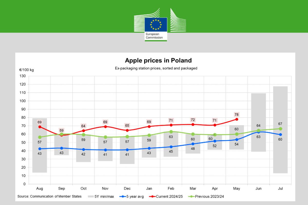 Czy podobnie będzie także w Polsce? Wiele na to wskazuje. Chociaż prognoz odnośnie naszego kraju również jeszcze nikt jeszcze nie opublikował, to powszechnie mówi się o plonowaniu zbliżonym do ubiegłorocznego. Nie brakuje także opinii, że nawet przy porównywalnych plonach, odsetek jabłek deserowych zmniejszy się kosztem odsetka jabłek przemysłowych. W teorii powinno to korzystnie przełożyć się na ceny jabłek wysokiej jakości.