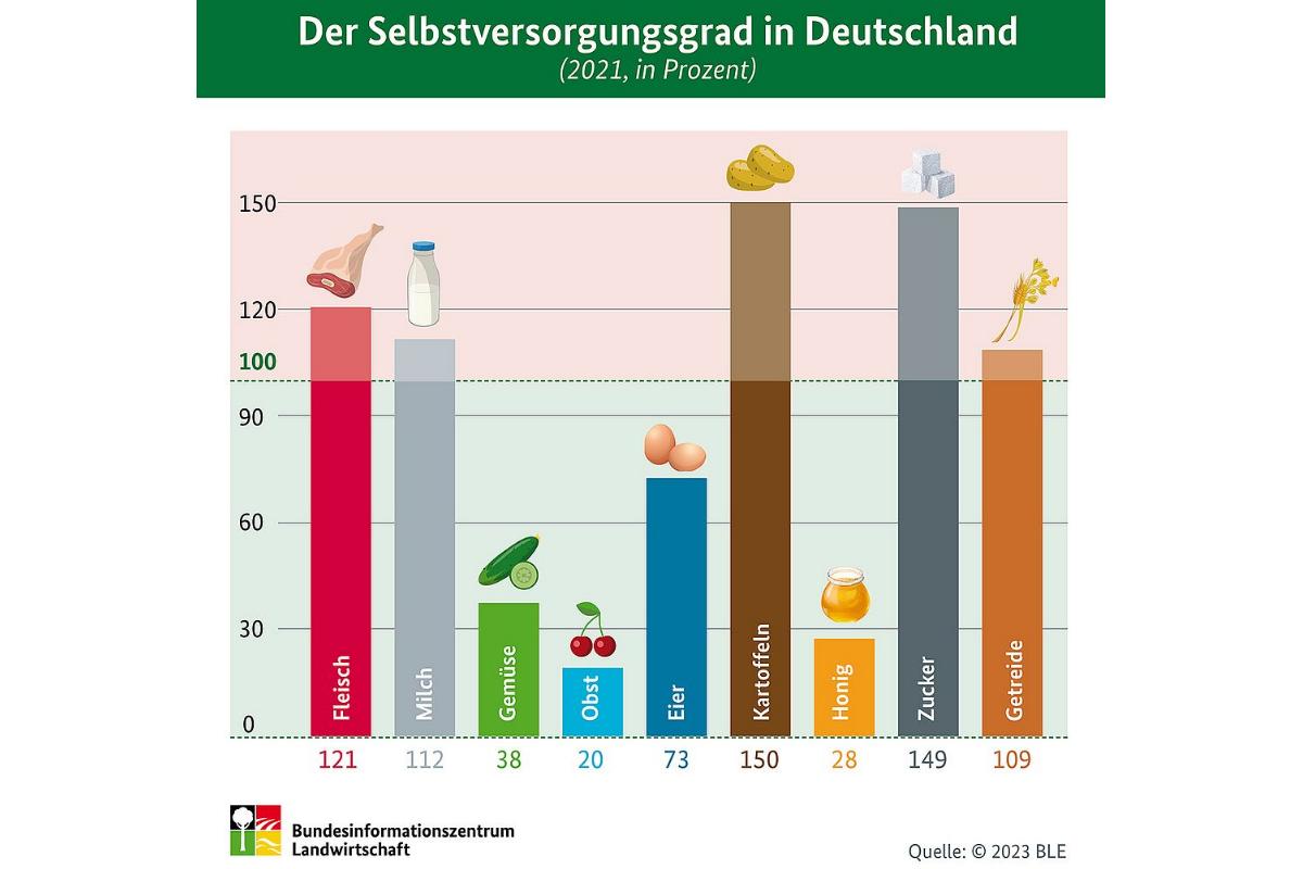 Jeden rolnik wyżywi w Niemczech 139 osób. To ponad dwa razy więcej niż w 1990 roku. Mimo wszystko to nadal za mało, żeby wyżywić ponad 83 milionowy kraj. Stopień samowystarczalności żywnościowej w roku 2021 w Niemczech wynosił tylko 81%, a w przypadku owoców zaledwie 20%.
