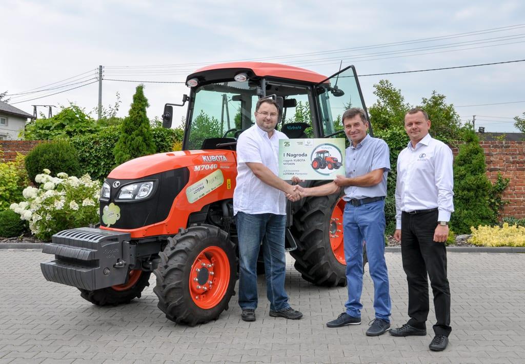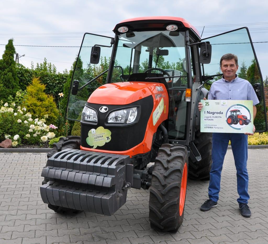 20 lipca przedstawiciele organizatora oraz partnerów Jubileuszowej Loterii Plantpressu przekazali główną nagrodę - ciągnik Kubota M7040N - sadownikowi z Jeżowa Stanisławowi Galińskiemu.