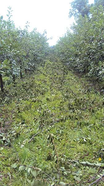 Korony dobrze prześwietlone gwarantują szybsze obsychanie liści, konarów i owoców (istotny element w walce chorobami) i lepszą penetrację cieczy opryskowej. Jest to szczególnie istotne podczas ochrony preparatami kontaktowymi. W przypadku brunatnej zgnilizny drzew pestkowych wystarczy nawet bardzo niewielkie źródło infekcji (jedna mumia w koronie drzewa), aby doszło do znacznego porażenia owoców. W przypadku tej choroby najbardziej skuteczne w ochronie przed infekcjami są fungicydy kontaktowe, pod warunkiem, że spenetrują dokładnie całą koronę i dotrą do każdego owocu. Dla skutecznego zwalczenia niektórych szkodników ciecz robocza musi dotrzeć do trudno dostępnych miejsc (np. spodniej strony liści, na której żerują przędziorki i pordzewiacze. Im luźniejsza korona tym łatwiej to osiągnąć. Często jednak podczas cięcia drzew zbyt słabo prześwietlane są korony (fot. 4 na str. 14), co w pełni sezonu ogranicza skuteczność zabiegów.