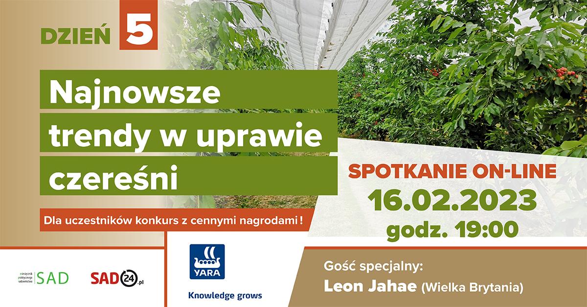 Tego dnia gośćmi wydarzenia będą: doradca z Wielkiej Brytanii, który specjalizuje się w uprawie czereśni – Leon Jahae, a także Andrzej Grenda z firmy Yara. W swoim wystąpieniu L. Jahae poda zalecenia na początek sezonu, przedstawi perspektywy dotyczące rynku czereśni, jak również trendy na kolejne lata (również odmianowe). Natomiast Andrzej Grenda omówi program nawożenia czereśni uwzględniając również swoje doświadczenia w uprawie tego gatunku.