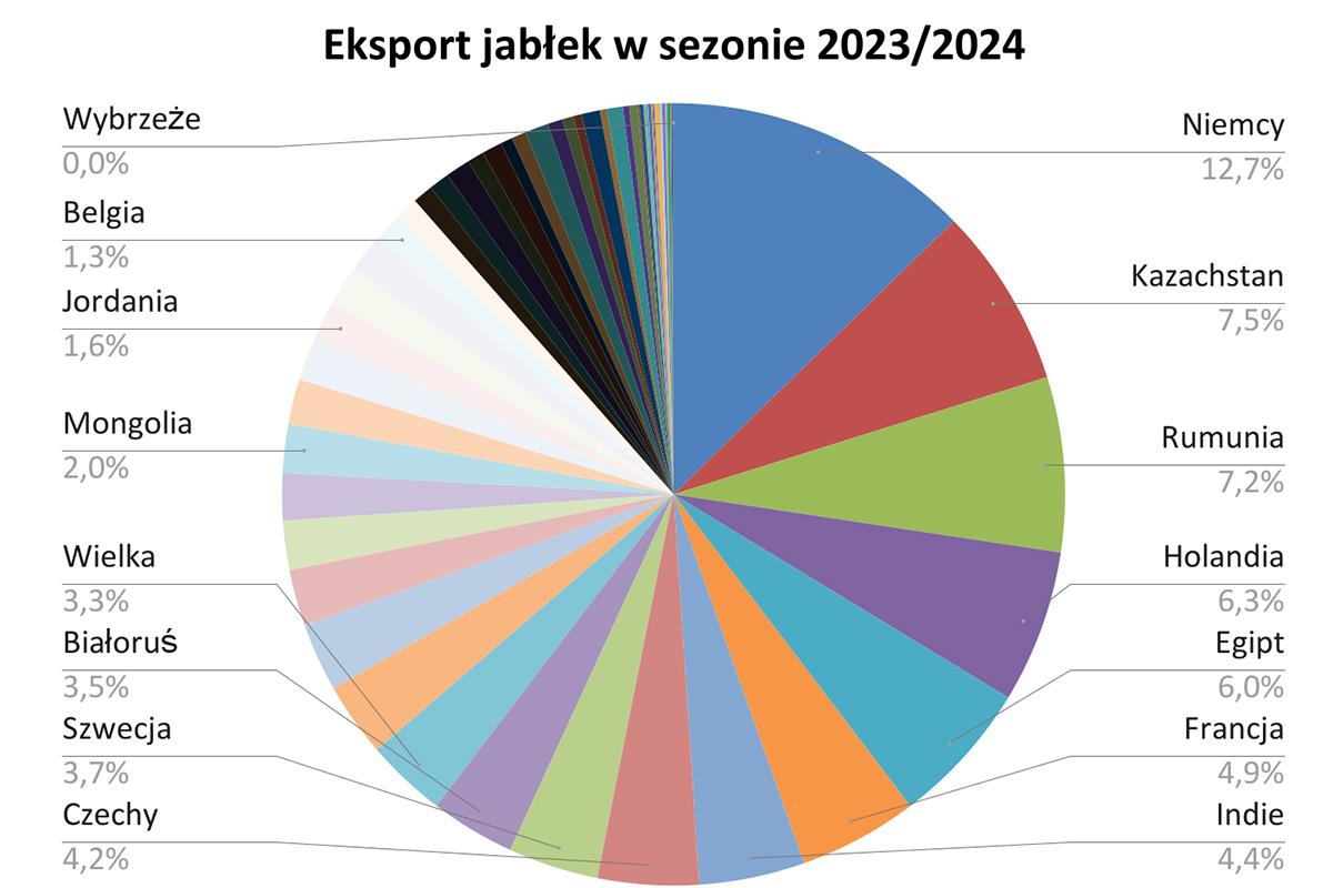Jeszcze niższe zbiory w Niemczech w tym sezonie teoretycznie powinny skutkować jeszcze większym eksportem z naszej strony. Ale zbiory są znacznie mniejsze także w Polsce. Ponadto, mając na uwadze problemy z przechowaniem, eksperci i eksporterzy raczej nie przewidują większego eksportu w tym kierunku w sezonie 2024/25.