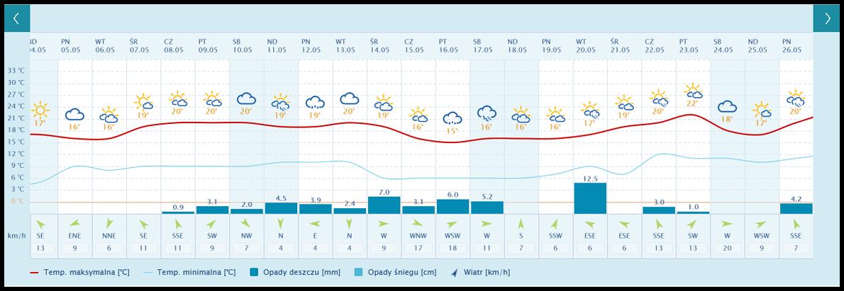 Zgodnie z prognozami sobota i niedziela miną pod znakiem przymrozków. Tego najbardziej obawiają się sadownicy. W połowie maja widzimy ponadto nawet 10 dni z deszczem.