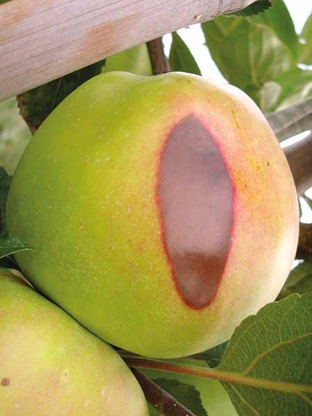 W uprawie roślin sadowniczych niedobór wapnia występuje głównie w owocach. Powoduje to pogorszenie ich jakości i zdolności przechowalniczej oraz obniżenie trwałości w obrocie handlowym. Dodatkowo owoce ubogie w wapń mają podwyższoną wrażliwość na pękanie (najczęściej ten problem dotyczy czereśni i śliwek – fot. 1), poparzenia słoneczne (fot. 2) oraz wiele chorób fizjologicznych. Owoce takie są także podatne na infekcje grzybowe, szczególnie w okresie przechowywania oraz po wyjęciu z chłodni.