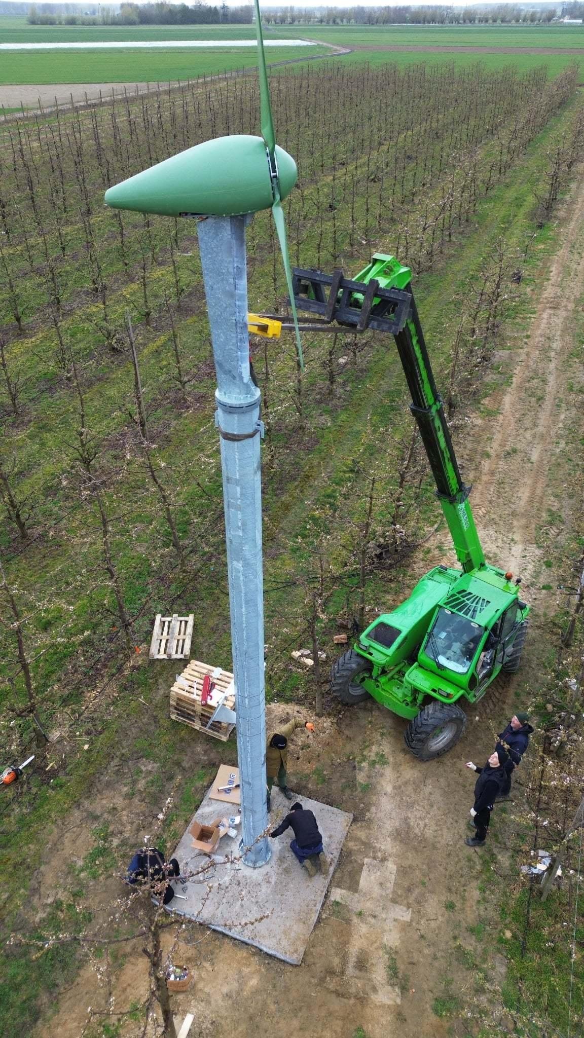 Jeśli temperatura spada od godziny 22 czy 23 i mróz trzyma do rana, sadownicy zostają w sadzie przez 8–10 godzin. Przy kilku nocach z rzędu robi się z tego ogromny wysiłek. Dlatego wiatrak ma przede wszystkim zmniejszyć straty, uprościć logistykę i obniżyć koszty samej ochrony.