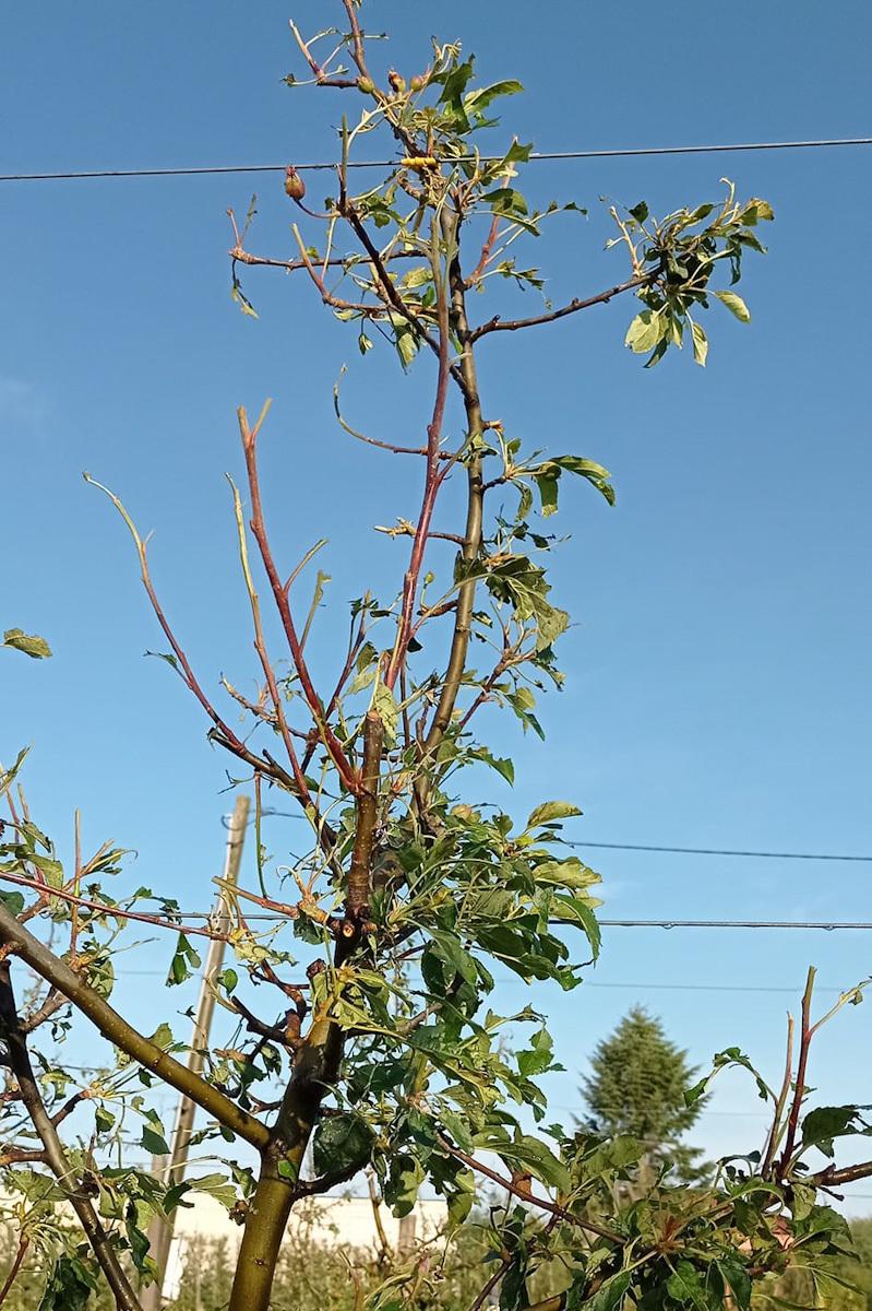 – Teraz będziemy ratować sady, żeby przetrwały do przyszłego roku – kontynuuje pani Katarzyna. Konieczne są zabiegi, które wspomogą młode drzewka. Na delikatnej, młodej korze widać dziesiątki uszkodzeń. W górnej części koron na starszych kwaterach prawie nie ma liści...