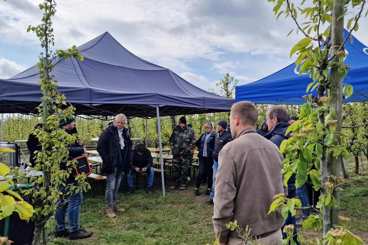 Doradca rozpoczął spotkanie od omówienia trudnych warunków atmosferycznych w Polsce i Holandii, z którymi borykają się sadownicy. W Niderlandach producenci ucierpieli z powodu wyjątkowo wczesnych i intensywnych opadów gradu. Jos de Wit podkreślił, że uprawa grusz to maraton, a nie sprint, więc o sukcesie decydują tygodnie pracy, a nie krótkie, jednorazowe wysiłki. Dużo uwagi poświęcono również biostymulacji grusz po przymrozkach. Doradca podkreślał, że zabiegi giberelinowe w niskich temperaturach nie przyniosą zamierzonych efektów. Minimalna temperatura do wykonania zabiegu to 17 stopni Celsjusza. Poruszono także temat nawożenia sadów gruszowych (głównie w kontekście dostarczenia azotu i żelaza w okresie kwitnienia i tuż po nim).O ochronie przed szkodnikami opowiedział Tomasz Gasparski (BAYER). Zwrócił on uwagę na strategię walki z miodówką, niezależnie od warunków atmosferycznych.Sebastian Przedzienkowski (Yara Poland) omówił temat nawożenia grusz po kwitnieniu. Zwrócił uwagę na okres intensywnych podziałów komórkowych i znaczenie odpowiedniego nawożenia drzew, wpływającego na jakość owoców.Po szkoleniu sadownicy długo dyskutowali z doradcą i zadawali liczne pytania. Mieli również okazję zapoznać się z ofertą niskich, plastikowych skrzyniopalet dedykowanych do przechowywania gruszek.