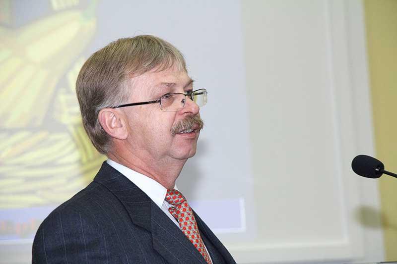 Drzewa owocowe żyją wiele lat i mają zdolność gromadzenia w drewnie, pędach, pąkach i korzeniach niektórych składników pokarmowych (N, P, K, Mg, Mn, B i Zn), które uruchamiane są wczesną wiosną. Dlatego sady, w tym gruszowe, muszą być co roku odpowiednio odżywiane, aby mogły plonować i bez zakłóceń zawiązywać pąki kwiatowe na następne lata – mówił dr Andrzej Grenda z firmy Yara Poland (fot. 2). Plonowanie w danym sezonie jest efektem odżywienia roślin przez kilka wcześniejszych sezonów, dlatego dokarmianie drzew owocowych różni się od nawożenia roślin jednorocznych, które po wydaniu plonu zamierają.