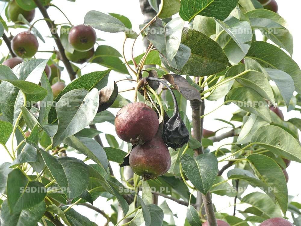 W ubiegłym roku panowało duże zagrożenie ze strony zarazy ogniowej. W rejonie Sandomierza, w wyniku błędu jednego sadownika, który po cięciu drzew zamiast spalić pędy z patogenem rozdrobnił je, doszło do rozprzestrzenienia się bakterii Erwinia amylovora na znacznym obszarze. Dodatkowo warunki pogodowe sprzyjały infekcji i walka z chorobą była trudna. Pierwsze jej objawy w postaci brunatniejących i zamierających kwiatów, które nie opadają, mogą być widoczne już wiosną na drzewach dotkniętych chorobą w lata poprzednie. Objawy na drzewach porażanych w roku bieżącym ujawniają się dopiero po 6 tygodniach od zakażenia kwiatów, gdyż z nich po infekcji bakterie przenikają do pędów i rozprzestrzeniają się w roślinie (dlatego objawy mogą pojawiać się w różnych partiach drzew). Zawiązki owocowe na takich roślinach czernieją, marszczą się, ale pozostają na drzewie (fot. 3). Na gruszkach często występują krople szarobiałego wycieku bakteryjnego. Z zakażonych owoców bakterie wnikają do krótkopędów i gałęzi. Na nich tworzą się zagłębione, nekrotyczne plamy, wyraźnie oddzielone od zdrowej tkanki. Powyżej miejsca porażenia pędy mogą zamierać. Młode brunatnieją wraz z liśćmi, a ich wierzchołki wyginają się na kształt pastorału. Patogen zimuje w porażonych, ale żywych pędach drzew. W warunkach umiarkowanej temperatury 20–24°C oraz przy wysokiej wilgotności powietrza bakterie bardzo szybko się namnażają, natomiast wysoka temperatura z silnym nasłonecznieniem ograniczają ich rozwój. Bakterie mogą być przenoszone na znaczne odległości, najczęściej z prądami powietrza i kroplami wody oraz na ciele owadów i ptaków. Znaczne zagrożenie rozwojem choroby panuje na terenach, gdzie rosną inni żywiciele E. amylovora, np. głogi, irgi, pigwy, jarzębiny lub ogniki.