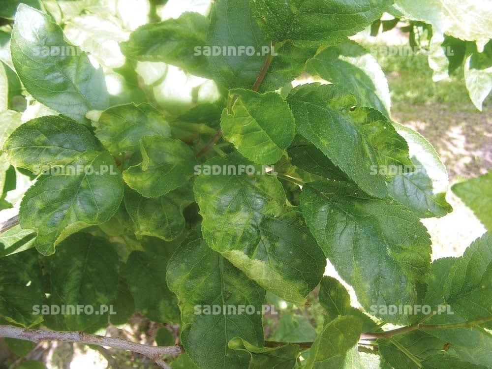 Ospowatość śliw, czyli szarka jest chorobą wirusową groźną dla śliw i moreli. Pierwsze objawy widoczne są na liściach już wiosną w postaci chlorotycznych przebarwień w kształcie pierścieni, smug lub rozmytych plam (fot. 6). Są one różne na poszczególnych gatunkach pestkowych (nawet odmianach śliw). U odmian szczególnie podatnych na porażenie wirusem (np. z grupy ‘Węgierki’) przebarwienia te stopniowo zamieniają się w nekrozy, ale dopiero pod koniec lata. U tych odmian oraz u moreli porażeniu ulegają także owoce. Na wyrośniętych, ale jeszcze zielonych śliwkach powstają fioletowe, okrągłe plamy, które ciemnieją i w miarę dojrzewania owocu zapadają się. Na morelach plamy te są jaśniejsze od miąższu, a na pestce widoczne są charakterystyczne odbarwienia (fot. 7). Powstają wówczas bruzdy, a miąższ w tych miejscach staje się czerwonawy, zawiera kropelki stwardniałej gumy i jest kwaśny. Takie owoce wcześniej dojrzewają i opadają. Wektorem patogenu są mszyce, stąd podstawą profilaktyki w przypadku wirusów jest zwalczanie szkodników, aby nie dopuścić do przenoszenia się choroby. Innym sposobem rozprzestrzeniania się szarki są zainfekowane zrazy, oczka oraz podkładki. Niezwykle istotna jest więc zdrowotność materiału szkółkarskiego