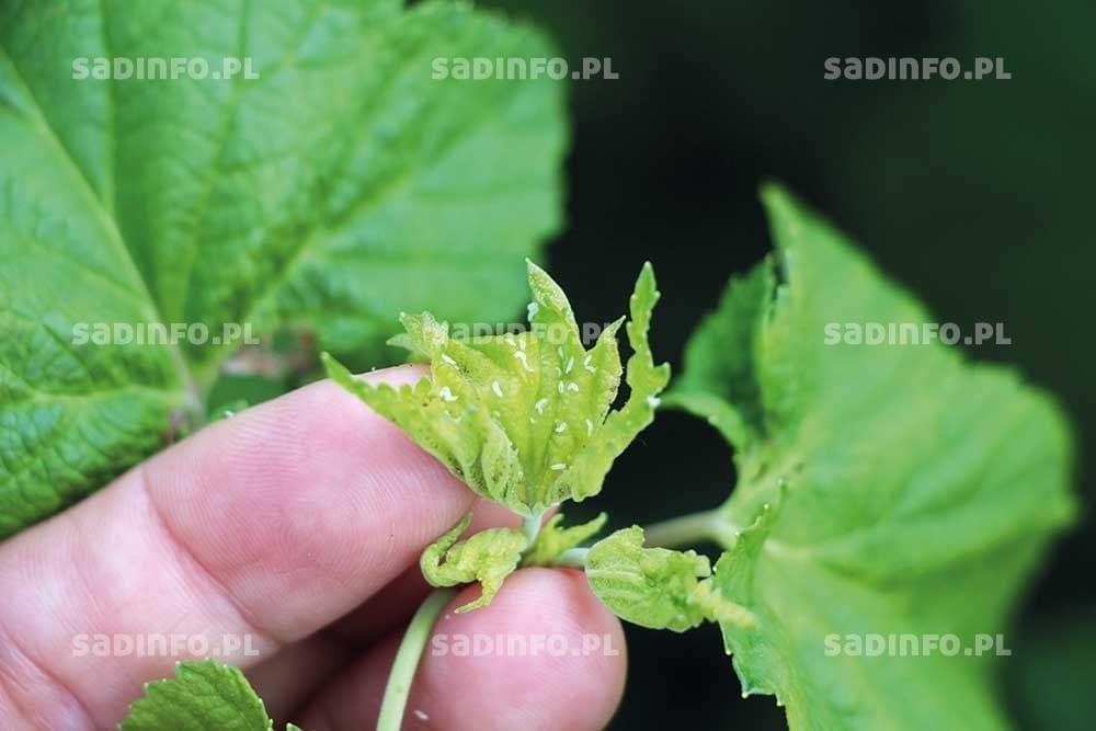 W ub.r. znaczne problemy w ochronie sprawiały mszyce i przędziorki. Były one obecne w sadach niemal do końca sezonu, a niezwalczone z łatwością przezimują podczas tak łagodnej zimy jak obecna i już od wczesnej wiosny mogą zacząć żerować. Przędziorek chmielowiec może pojawić się na plantacjach porzeczki czarnej nawet w kwietniu, podobnie jak w 2014 r. (dotyczyło to głównie plantacji, na których szkodnik ten wystąpił w sezonie 2013). W poprzednim sezonie, a obecny może być podobny, znacznie przyspieszona wegetacja zmyliła niektórych plantatorów i niechcący dopuścili do nadmiernego namnożenia się tego roztocza i zwalczania go później niż zazwyczaj. Do tego celu zarejestrowany jest jedynie Ortus 05 SC (można go stosować na odpowiedzialność użytkownika) w dawce 1,5 l/ha do dwóch zabiegów, przy czym pierwszy należy przeprowadzić, gdy na pędach pierwszy liść jest w pełni rozwinięty (fot. 8).