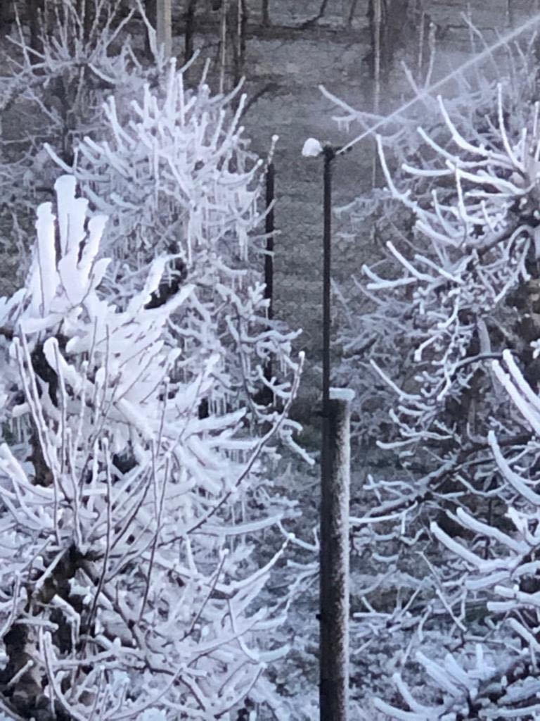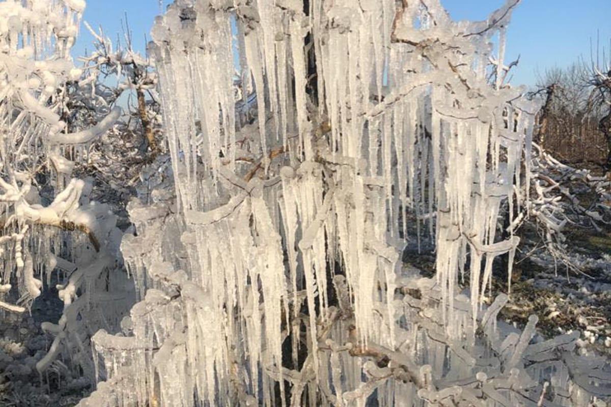Jednak nie wszyscy, którzy mieli taką możliwość włączali zraszacze, obawiając się odwrotnych skutków. Na gałęziach tworzyła się gruba warstwa lodu, która nie topniała ze względu na niską temperaturę w trakcie dnia. Niestety, pod ciężarem lodu odłamywały się pąki, a nawet całe pędy i gałęzie.
