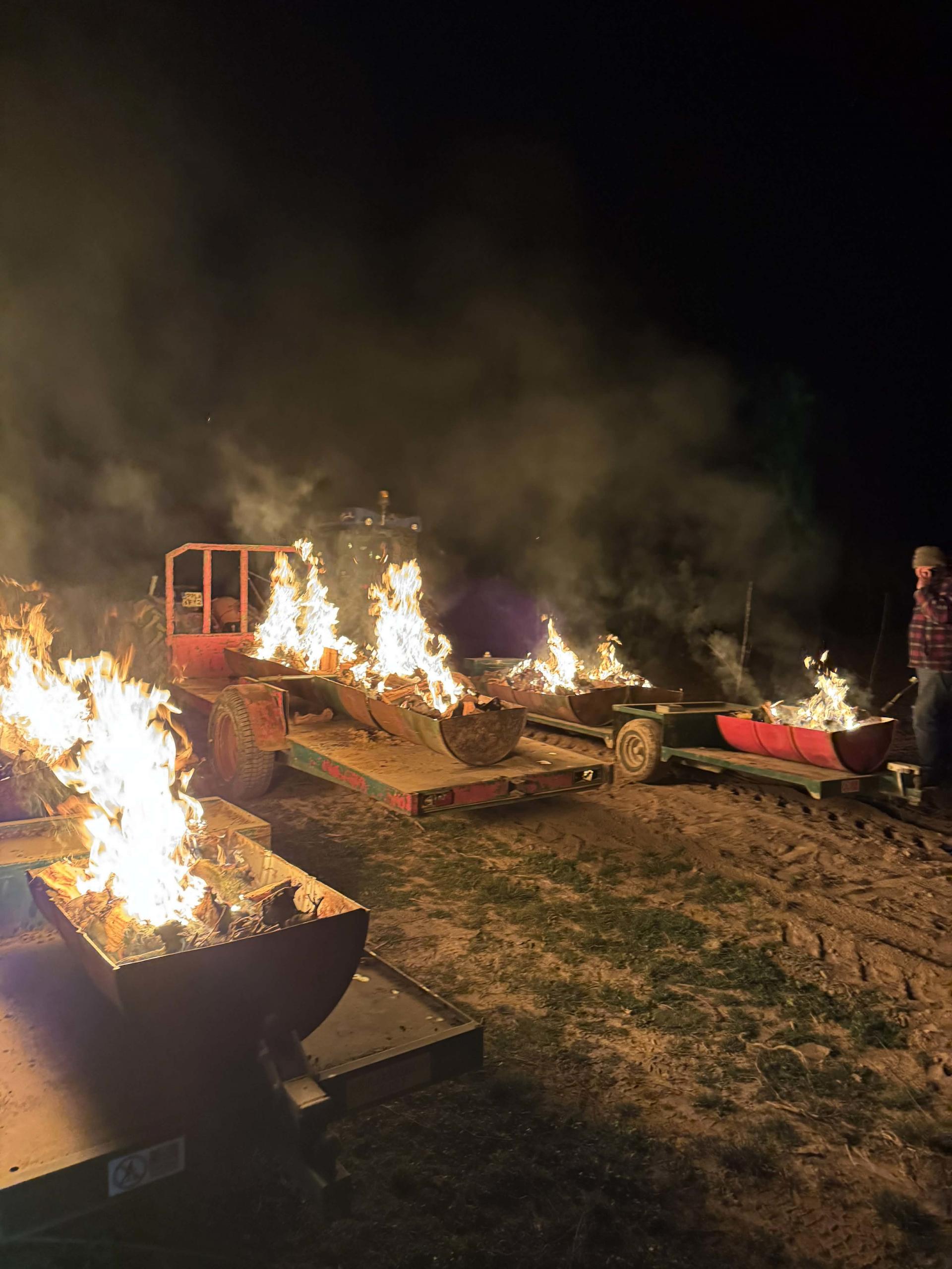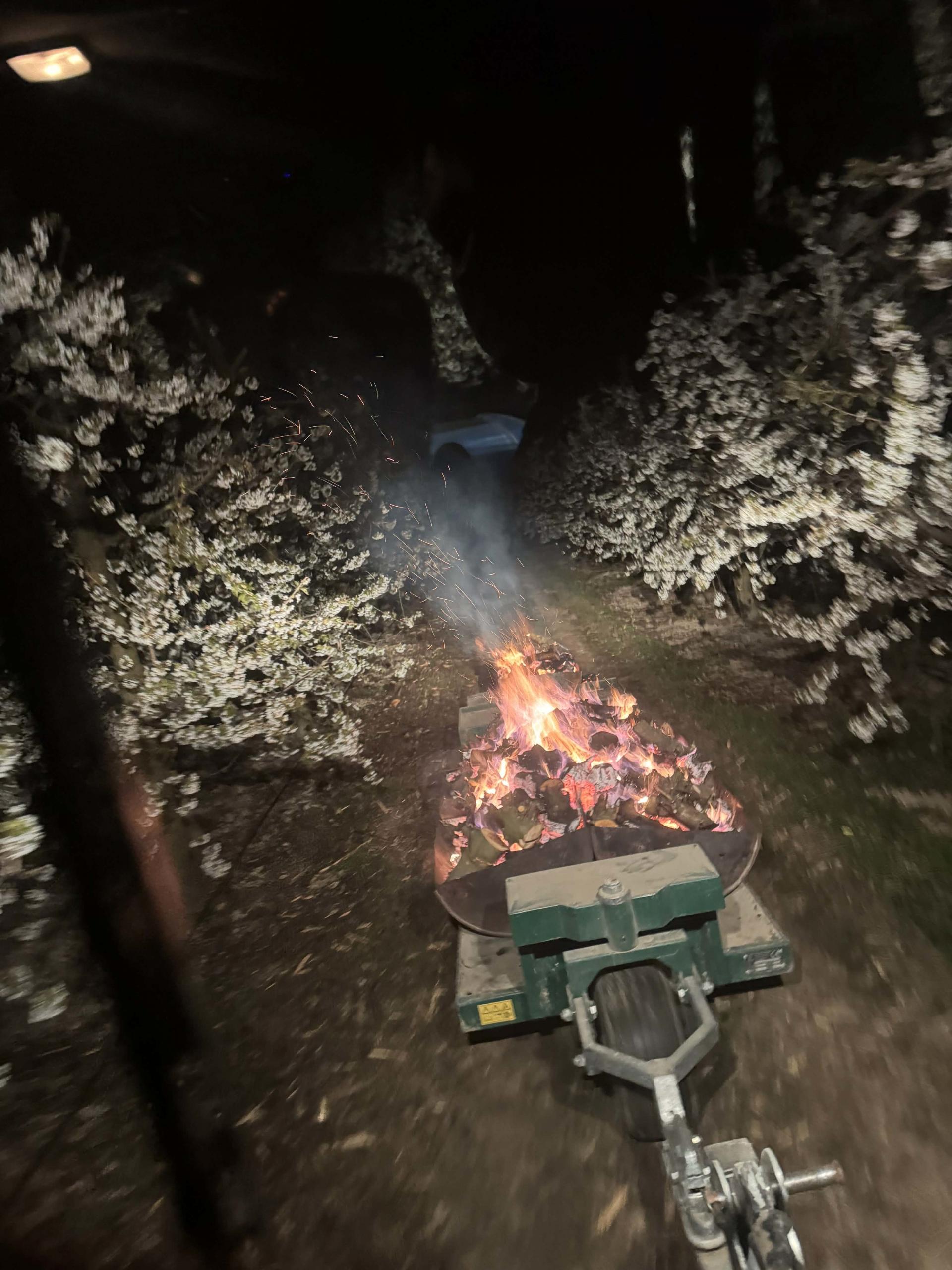 Ochrona czereśni w sadzie Łukasza Cielmy, autora kanału na YouTube „Cielmus Lubelski Sadownik”, zaczęła się około 23.00. Wspólnie z tatą i synem jeździli trzema ciągnikami, ciągnąc za sobą wózki. Na nich ustawili pocięte beczki, w których palili drewnem. Pracowali praktycznie do 6.00 rano.