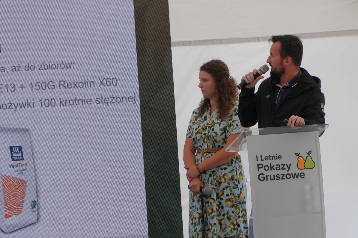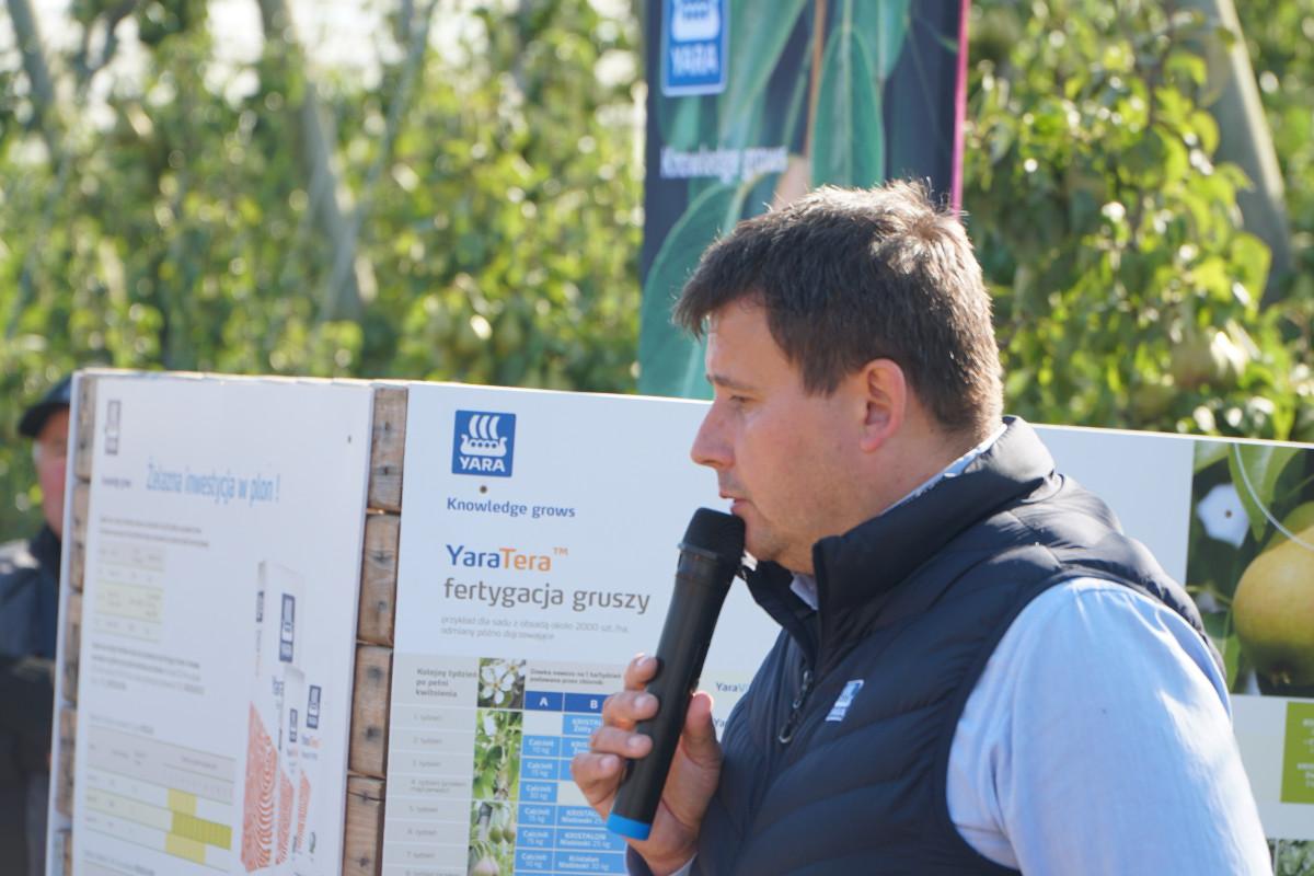 Druga stacja tematyczna dotyczyła nawożenia grusz. Przygotował ją zespół firmy YARA Poland, która była partnerem wydarzenia. Chociaż pytania do specjalisty firmy, Sebastiana Przedzienkowskiego, dotyczyły całego sezonu, skupił się on przede wszystkim na dokarmianiu w okresie wzrostu i dojrzewania owoców. Ekspert podkreślał także rolę monitorowania wilgotności gleby w sierpniu, co jest kluczowe przy wzroście gruszek.