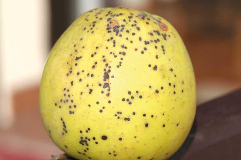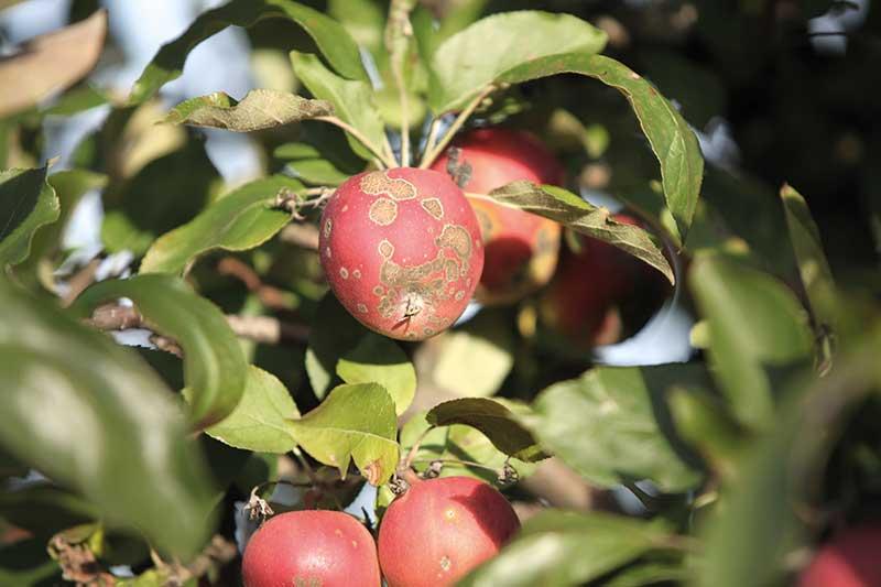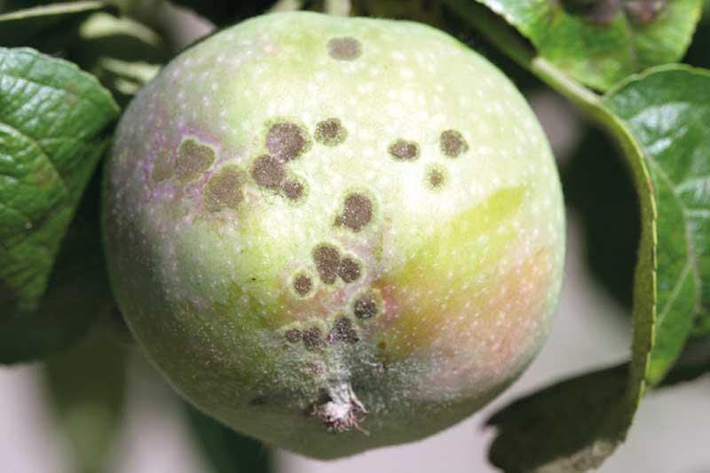 Konsekwencją problemów w ochronie przed parchem jabłoni w sezonie wegetacyjnym może być pojawienie się parcha określanego jako przechowalniczy, gdyż rozwija się on dopiero w czasie przechowywania owoców (fot. 6). To zagrożenie jest mniejsze, gdy jabłka przechowywane są w chłodni z KA niż w chłodni zwykłej.