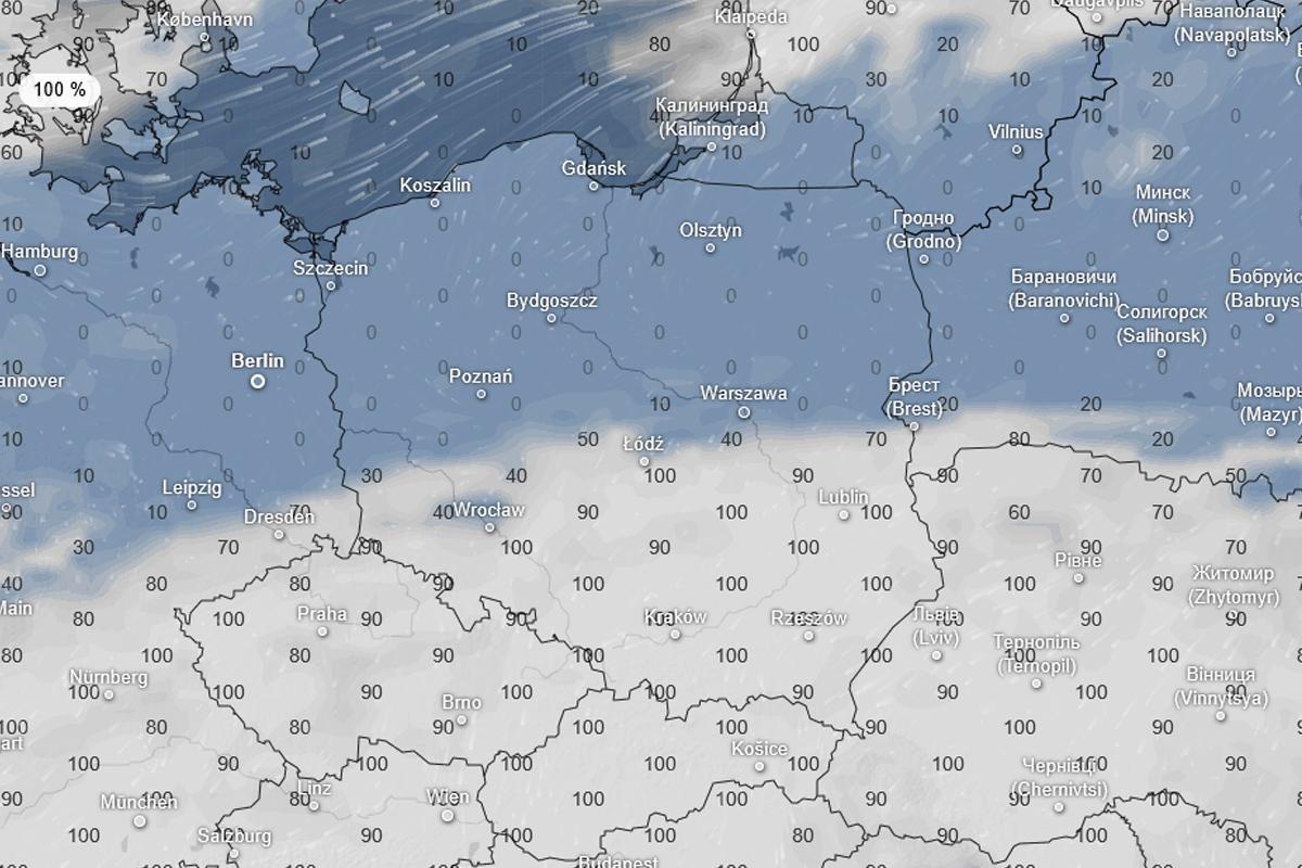 Odwrotnie będzie w północnej połowie kraju, gdzie modele wyliczają minimalnie -5°C, a  lokalnie na Mazurach i Pomorzu Zachodnim nawet -8°C przy gruncie.