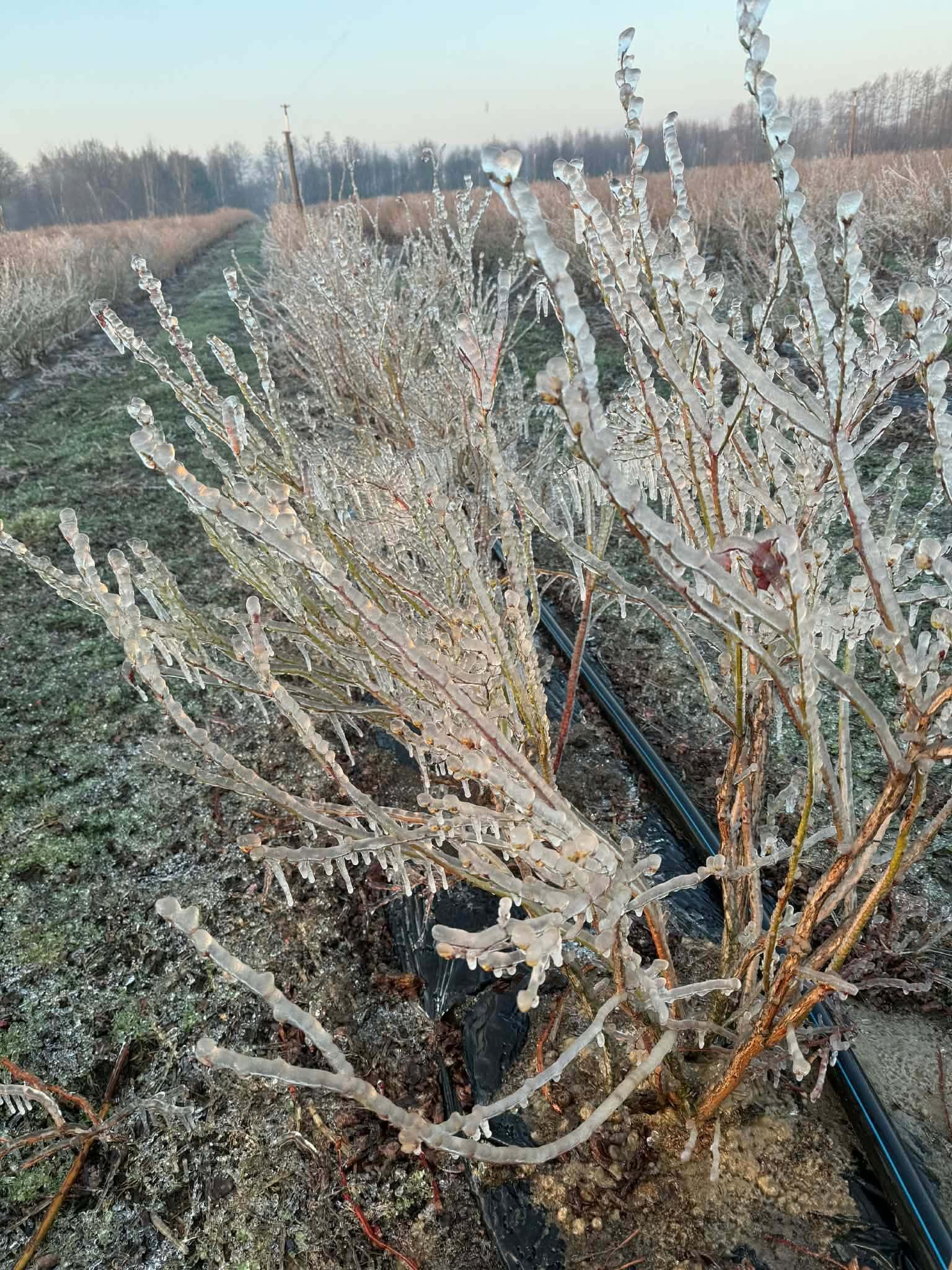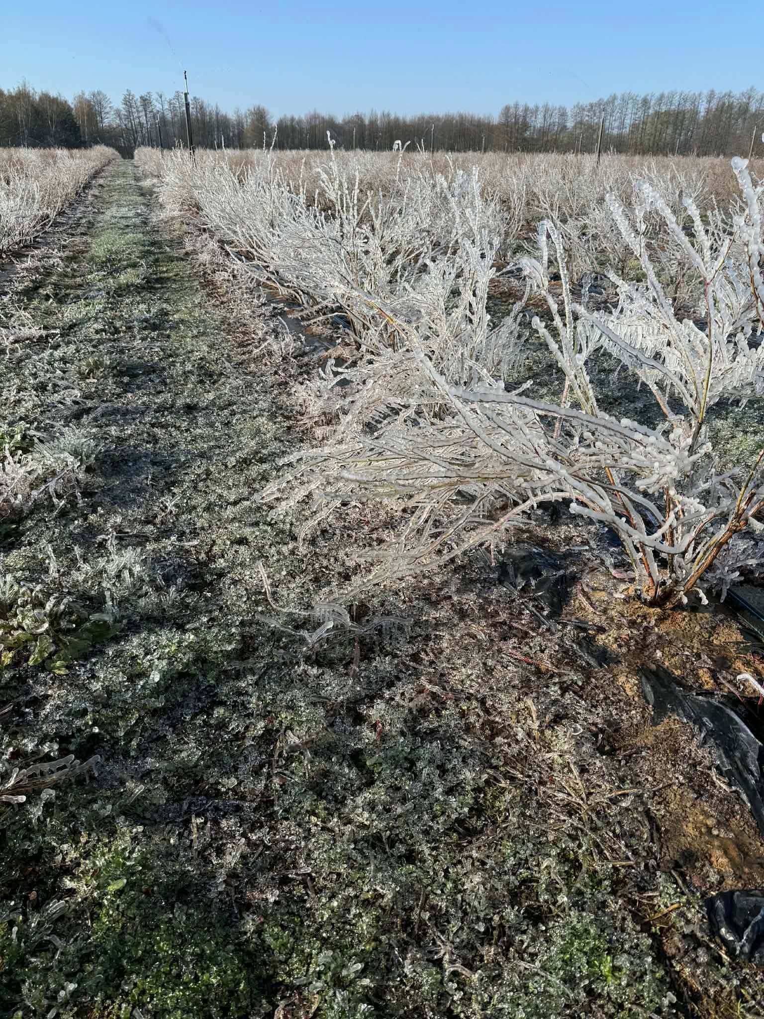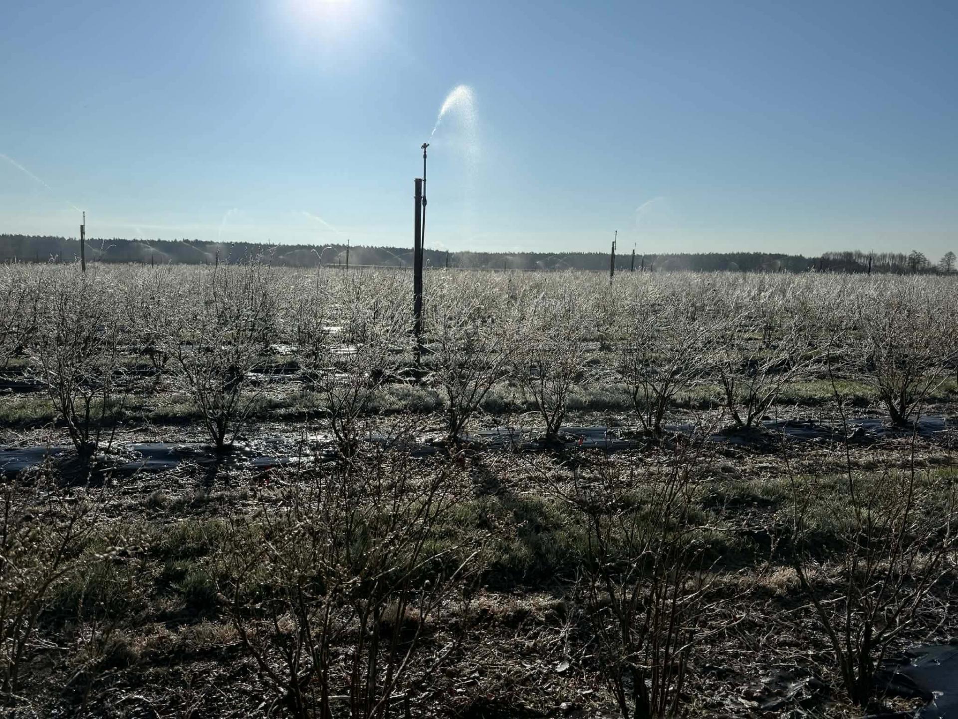 Swoje plantacje chronili też producenci borówki. W jednej z takich lokalizacji temperatura przy gruncie spadła do -8°C. Łychowska Wola (gmina Jasieniec). U pana Pawła temperatura przy gruncie na tej działce spadła do -8°C przy gruncie: