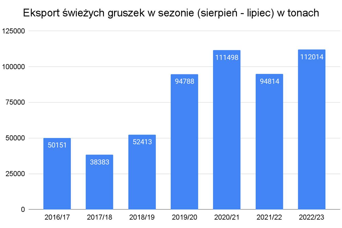 Mając na uwadze rosnący obszar sadów gruszowych, najprawdopodobniej w kolejnych latach wyprodukujemy więcej owoców gatunku. Rośnie też reeksport gruszek z Polski, co również, jak na razie, jest pozytywnym trendem.