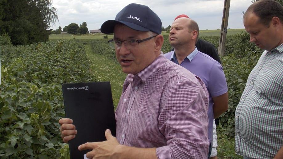 Radosław Suchorzewski przedstawił nowe rozwiązania w ochronie porzeczki czarnej proponowane przez firmę Bayer. Wśród nich znajduje się preparat Luna Sensation 500 SC. Jest to środek grzybobójczy zawierający dwie substancje aktywne - fluopyram (250 g/l) i trifloksystrobinę (250 g/l). Wykazuje się działaniem kontaktowym, systemicznym i mezostemicznym. Zalecana dawka to 0,6-0,8l/ha. Kolejnym preparatem jest Serenade ASO. Jest to fungicyd i bakteriocyd biologiczny o działaniu kontaktowym do stosowania zapobiegawczego lub na początku porażenia. Zawiera on szczep QST 713 bakterii Bacillus subtillis. Ostatnim z omówionych jest Emulpar 940 EC, środek o działaniu mechanicznym, oparty na naturalnym oleju z lnianki (Camelina satavia). Przeznaczony jest do zwalczania, między innymi, przędziorków i mszyc w stężeniu 0,9-1,2%, przy czym ważną kwestią jest dobre pokrycie rośliny.