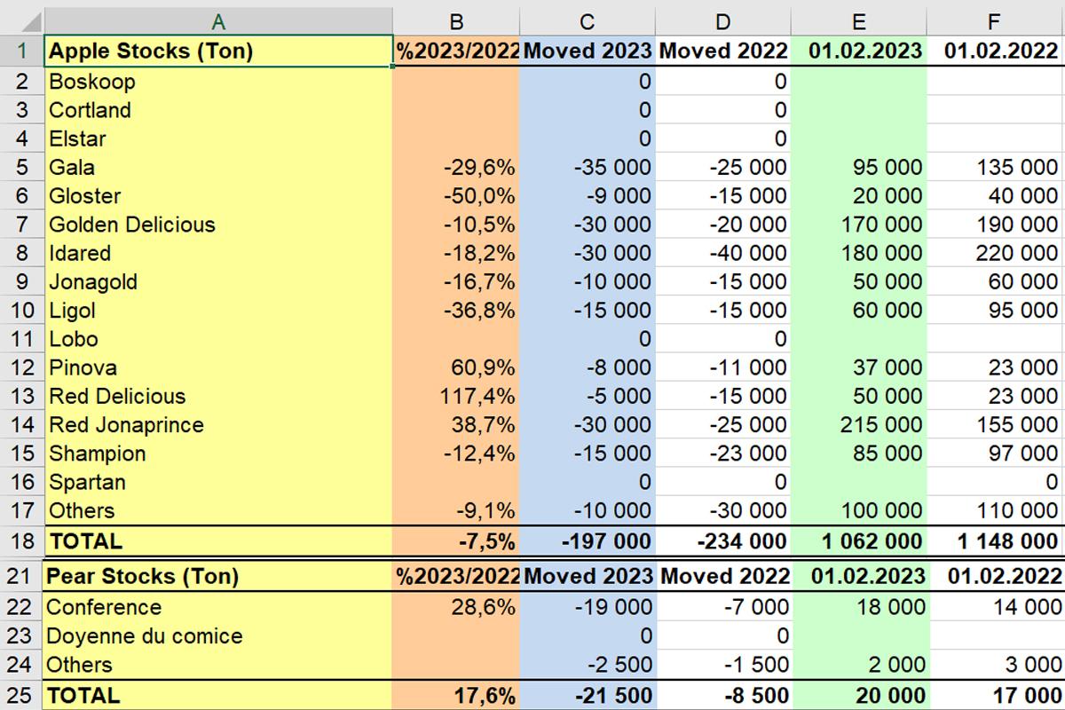 Obok ogólnych szacunków WAPA o jabłkach zmagazynowanych w Europie powinniśmy przede wszystkim przyjrzeć się dokładnym danym dotyczących Polski. Jakich odmian mamy więcej, a jakich mniej niż przed rokiem?
