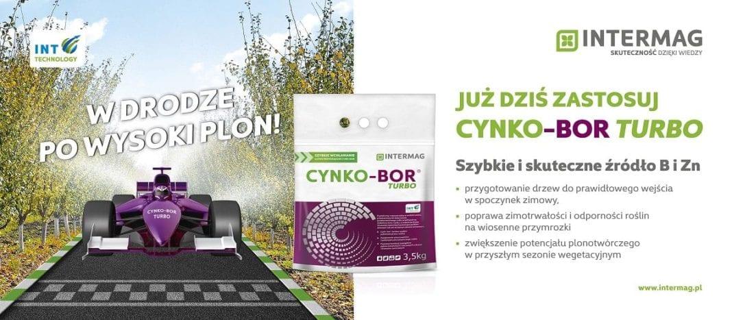 Planując jesienne zabiegi warto sięgnąć po CYNKO-BOR TURBO mineralny nawóz firmy INTERMAG. Oprócz cynku i boru produkt zawiera Technologię INT (Innovative Nutrient Transfer), która zwiększa szybkość i efektywność pobierania, przemieszczania oraz przyswajania boru i cynku w roślinie. Nawóz zastosowany jesienią przed spoczynkiem zimowym dostarcza roślinom bor i cynk w formach, które są pobierane przez liście i akumulowane w zdrewniałych częściach roślin, gdzie są magazynowane przez okres zimy, następnie wczesną wiosną wykorzystywane przez pąki, kwiaty i zawiązki owoców. Dzięki temu roślina uniezależnia się od ich dostępności z gleby, z której na przedwiośniu, przy niskich temperaturach możliwość ich pobierania jest bardzo ograniczona.