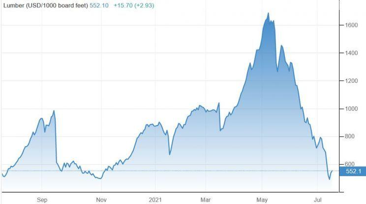 Ceny drewna rosły błyskawicznie od listopada ubiegłego roku. Maj 2021 roku to szczyt cen. Do końca lipca ceny widocznie spadły. Analitycy giełdowi piszą o pęknięciu bańki na rynku tarcicy. Wyhamował także wzrost cen stali. Wypłaszczenie cen stali przetworzonej (profile, kształtowniki, blacha) widać także po zerknięciu na indeksy publikowane przez Polską Unię Dystrybutorów Stali. Podsumowując, drewno staniało, a ceny stali przestały rosnąć.