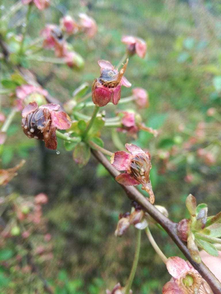 Na dziś wiązanie wiśni wygląda bardzo przeciętnie – działka wysoko położona gdzie było tylko -1,3˚C. W miejscu gdzie robione były zdjęcia czarnych zawiązków jest do 10%.