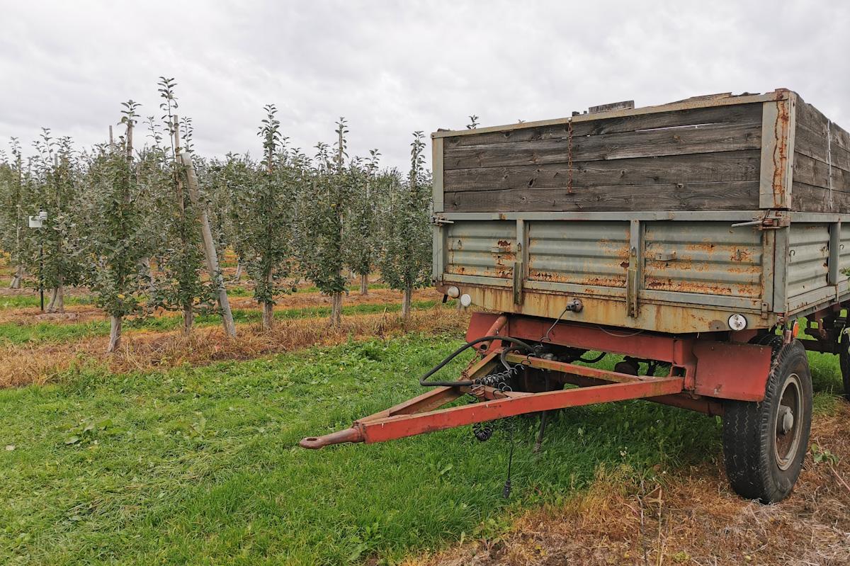 Najtańszym rozwiązaniem są starsze, używane przyczepy rolnicze. Są i były używane przede wszystkim do transportu zbóż. Oferta takich maszyn na rynku wtórnym jest niezwykle szeroka. Żebyśmy byli spokojni o stan techniczny przyczepy oraz pewni, że posłuży nam wiele lat musimy liczyć się z wydatkiem około 10 000 złotych. Po demontażu burt jest ona w zasadzie najtańszą formą transportu większych ilości skrzyniopalet z jabłkami deserowymi. Czy to do grupy producenckiej czy gospodarstwa. Niestety nierzadko wymiary nie pasują do wielokrotności wymiarów drewnianych skrzyniopalet.