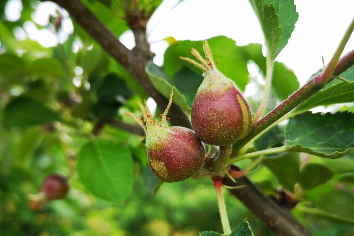 Po niektórych zawiązkach widać już, że będą zdeformowane. W przypadku innych można jeszcze liczyć, że będzie to jedynie wada pod postacią ordzawienia skórki. Odsetek jabłek z defektem jest bardzo różny. Jak wspomnieliśmy wyżej, dotyczy przede wszystkim odmiany Szampion.