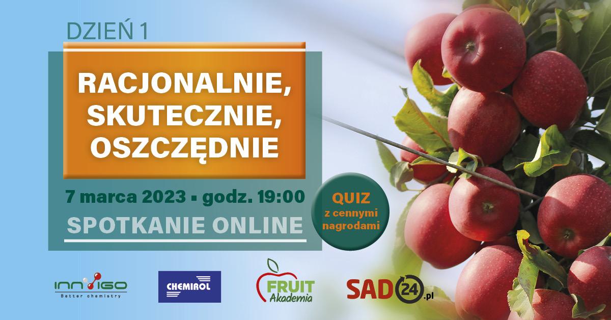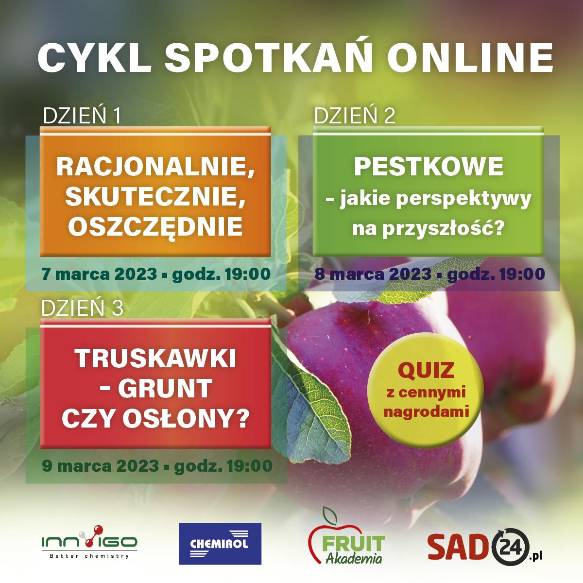 Już w dniach 7, 8, 9 marca zapraszamy na cykl trzech przedsezonowych spotkań online. Pierwsze z nich będzie dotyczyło oszczędnego, ale racjonalnego podejścia do ochrony jabłoni. Tradycyjnie spotykamy się o godz. 19.00.