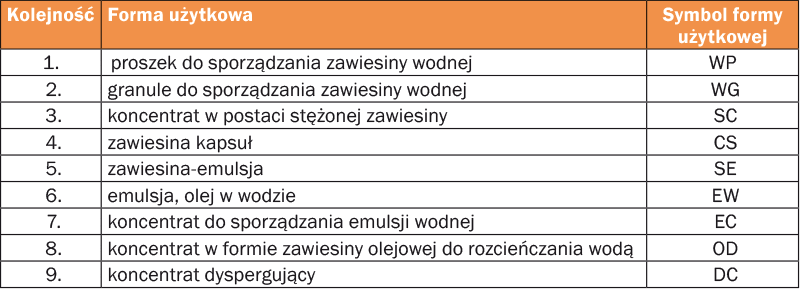 - W przypadku, gdy przygotowujemy mieszaninę np. środków ochrony roślin, należy przy tym przestrzegać kolejności dodawania ś.o.r. według ich form użytkowych (tabela):