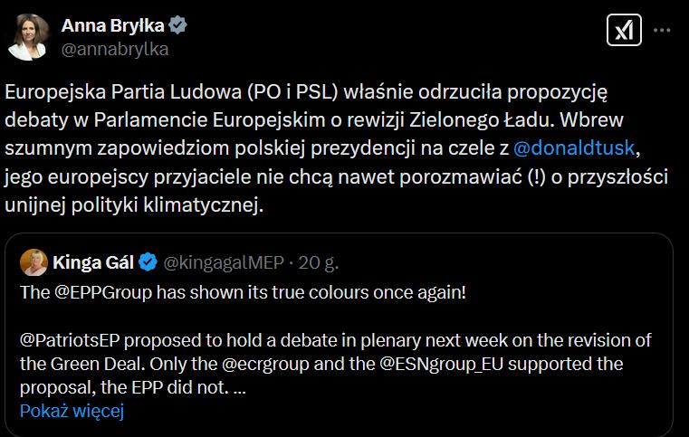Politycy, których możemy określić mianem eurosceptyków, alarmują w mediach społecznościowych, że Parlament Europejski odrzucił propozycję debaty o rewizji Zielonego Ładu. Krytycy mówią także o stanowisku polskiego rządu, które okazuje się być nic niewarte wobec wyników głosowania w Brukseli. Przypomnijmy, że jednym z haseł polskiej prezydencji miała być właśnie rewizja Zielonego Ładu.