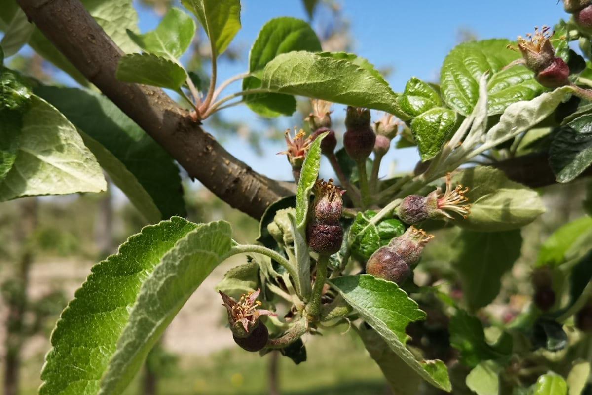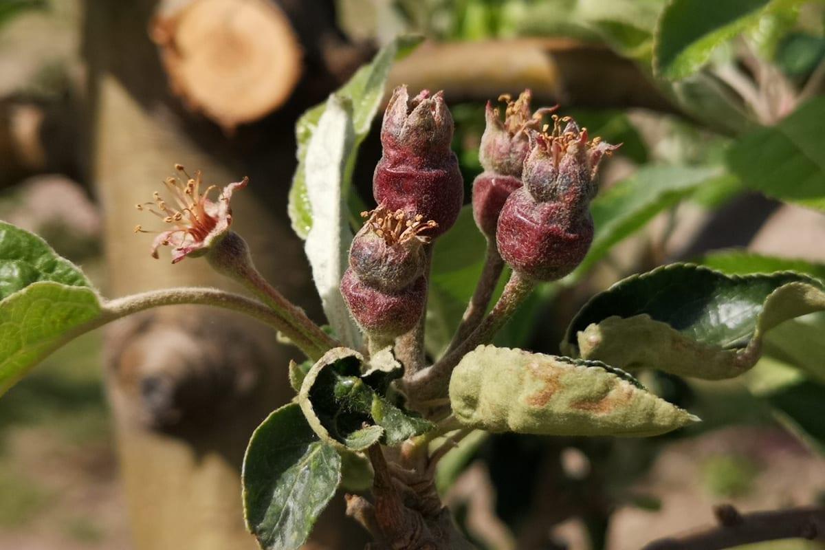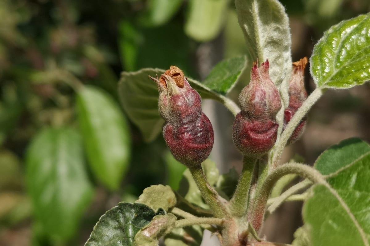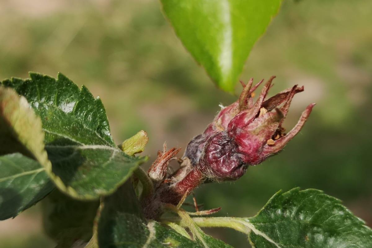 Na innych odmianach, które są nie są tak zaawansowane w rozwoju zawiązków znacznie trudniej ocenić stopień strat. Jedynie po dotknięciu zawiązka można uznać, że jest znacznie bardziej miękki, niż te nieuszkodzone.
