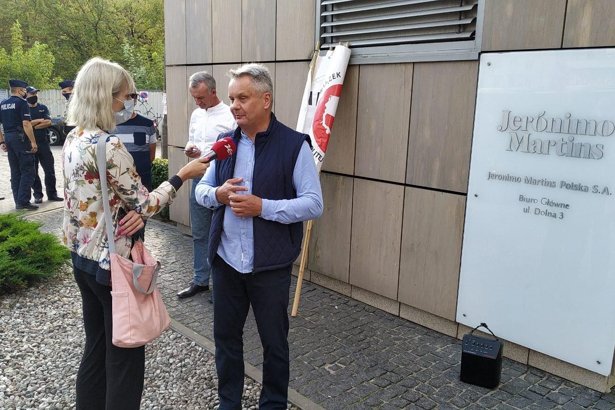 W związku z trwającą, drastyczną obniżką cen zakupu jabłek deserowych przez sieci handlowe, Związek Sadowników RP zorganizował dziś, tj. 24 sierpnia, pikietę pod siedzibą Jeronimo Martins w Warszawie. – Ciągły spadek cen spowoduje długofalowy kryzys w branży w bieżącym sezonie. Brak reakcji ze strony sadowników będzie akceptacją takiej polityki handlowej przez markety – wyjaśnia Związek Sadowników.