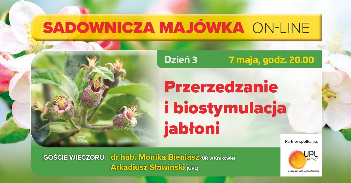 Trzecie spotkanie w ramach Sadowniczej Majówki on-line poświęcone będzie przerzedzaniu i biostymulacji. Zapraszamy już 7 maja, o godz. 20.00. Gośćmi wieczoru będą dr hab. Monika Bieniasz z UR w Krakowie oraz Arkadiusz Sławiński z firmy UPL, która jest partnerem spotkania.