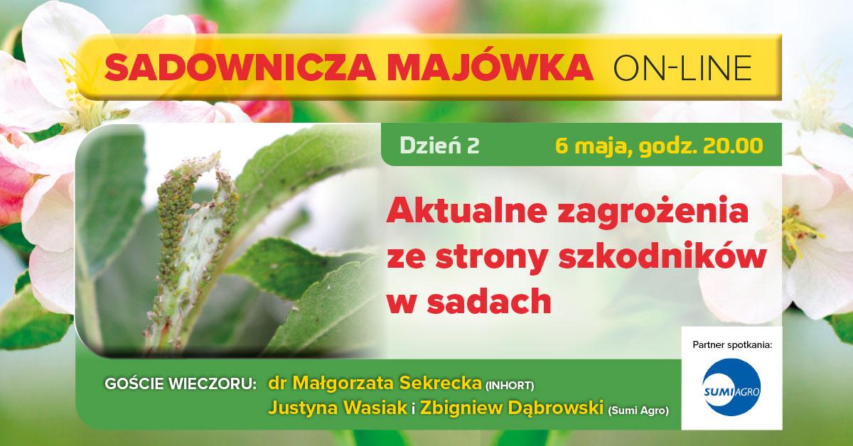 Już 6 maja o godz. 20.00 zapraszamy na drugie spotkanie w ramach cyklu Sadownicza Majówka on-line, które będzie poświęcone tematowi szkodników w sadach. Partnerem wydarzenia jest firma Sumi Agro Poland.