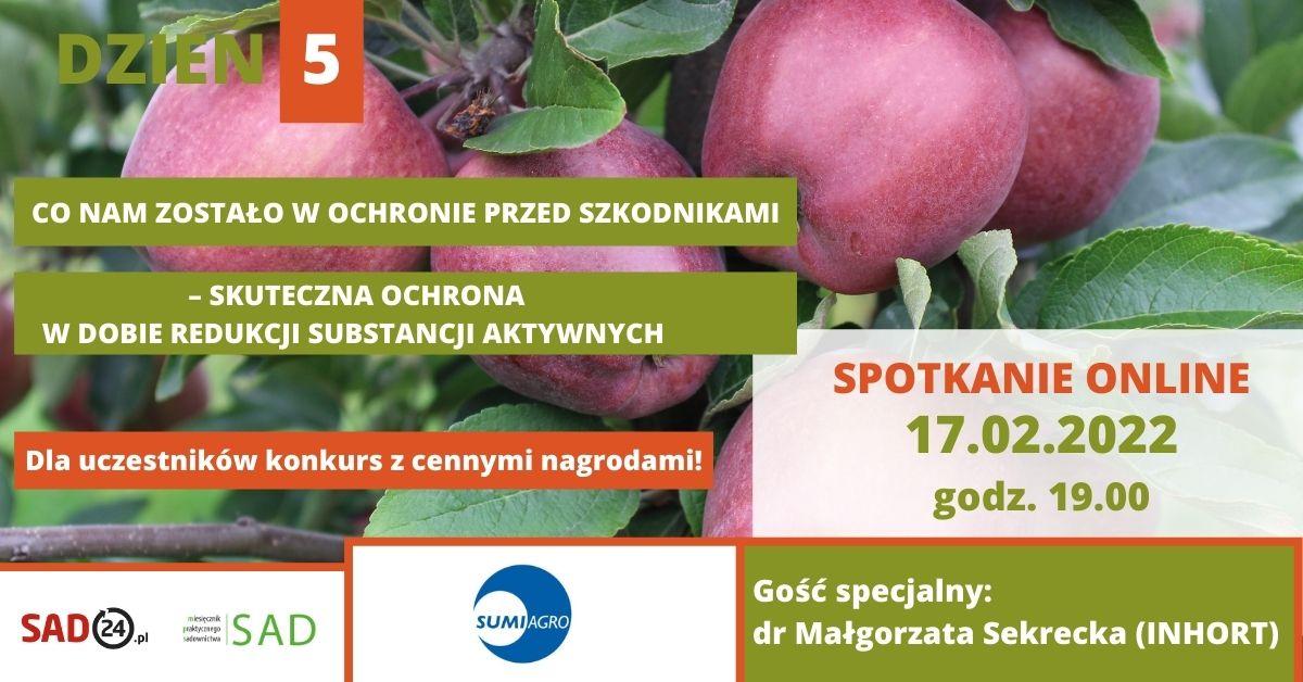 Wszyscy uważnie śledzimy doniesienia dotyczące wykluczania z użycia kolejnych substancji aktywnych. Jak radzić sobie dziś z ochroną sadu przed szkodnikami? Jakie mamy alternatywy? Gośćmi wieczoru będą dr Małgorzata Sekrecka z Instytutu Ogrodnictwa w Skierniewicach, a także Justyna Wasiak i Zbigniew Dąbrowski z Sumi Agro Poland.