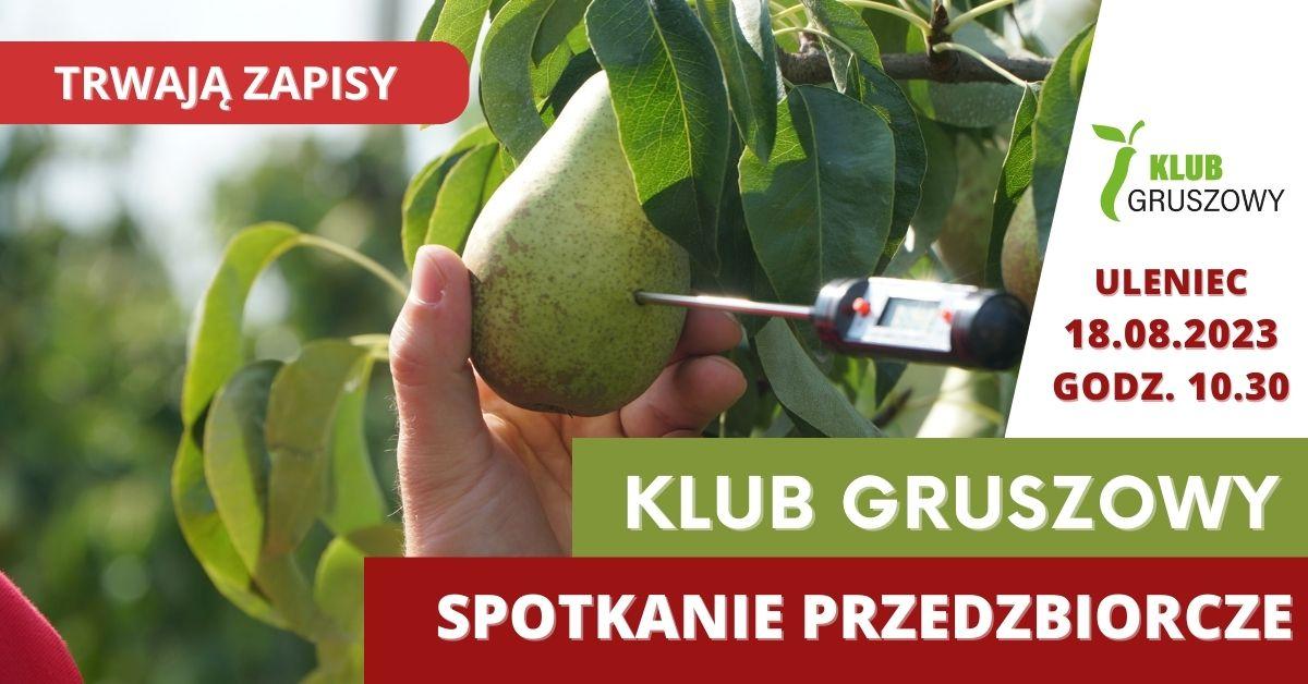Już 18 sierpnia 2023 zapraszamy na przedzbiorcze spotkanie Klubu Gruszowego. Zainteresowani uprawą grusz będą mieli okazję zobaczyć tuż przed zbiorami sad gruszowy państwa Elżbiety i Wojciecha Kotów, bo to właśnie w ich gospodarstwie odbędą się warsztaty.