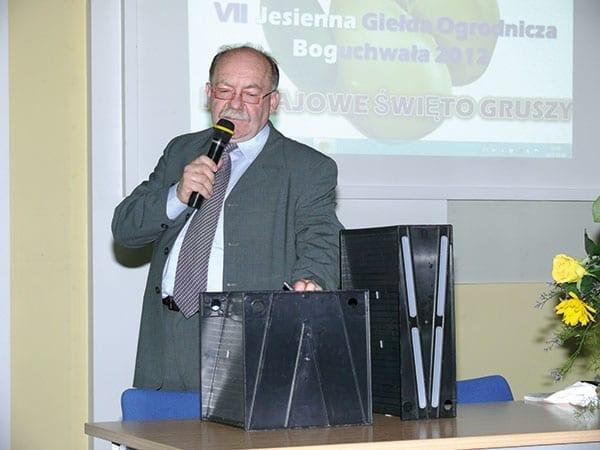 Zbiory gruszek w Polsce nadal są niskie i stanowią (według danych szacunkowych GUS na 2012 r.) zaledwie 2,1% zbiorów wszystkich owoców w naszym kraju, co sprawia, że rodzima produkcja nie zaspokaja potrzeb konsumentów, zwłaszcza w okresie zimowym, gdy w dużych sieciach handlowych pojawiają się zbyt drogie gruszki z innych rejonów świata. Dla porównania jabłka stanowią aż 86,5% produkcji owoców w Polsce – rozpoczął wystąpienie mgr Paweł Bielicki (fot. 4) z Instytutu Ogrodnictwa w Skierniewicach.