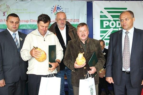 W konkursie na „Największego producenta gruszek w Polsce” jury postanowiło przyznać trzy równorzędne nagrody (fot. 6). Za skalę produkcji komisja oceniająca wyróżniła gospodarstwo Wojciecha Klimkiewicza z Wtelna (woj. kujawsko-pomorskie), który uprawia grusze na powierzchni 20 ha. Za nowatorskie prowadzenie sadu nagrodzono Mariana Szeligę uprawiającego grusze na 8 hektarach, a za specjalizację – Wiktora Sobolewskiego z Sierzchowa, w którego 12-hektarowym sadzie grusze zajmują ponad 80% powierzchni. Uwieńczeniem dnia był pokaz przyrządzania dań obiadowych oraz deserów z gruszką w roli głównej, który poprowadziła Ewa Wachowicz.