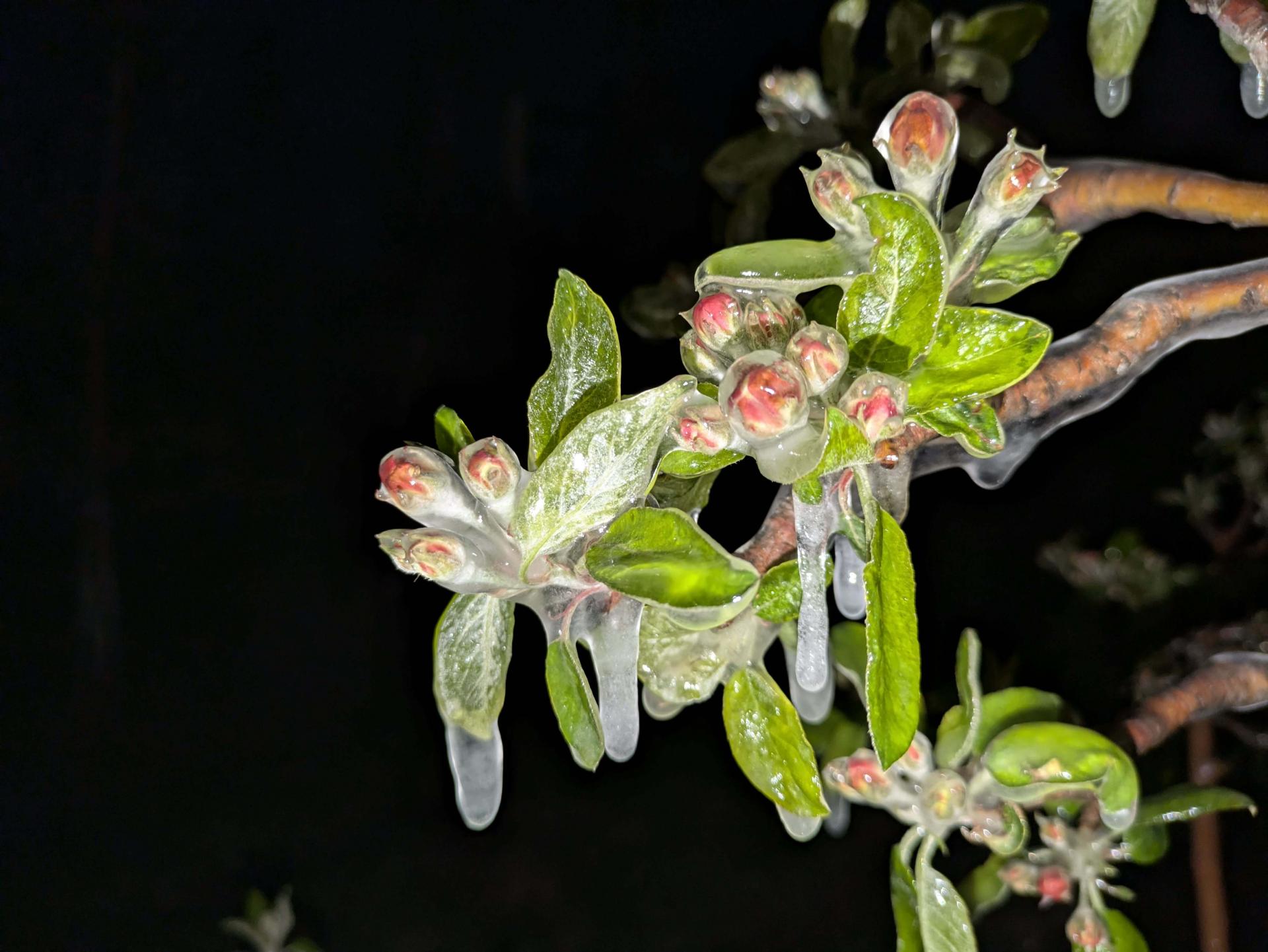 Niepewności było dużo. Wieczorem sadownicy obserwowali wiatr i zachmurzenie, bo to od nich w dużej mierze zależał przebieg tej nocy (26/27.04.2026 r.). Ostatecznie scenariusz okazał się bardzo zły. Jak relacjonowali nam pierwsi sadownicy z województwa łódzkiego, temperatura zaczęła spadać już krótko po 21.00. Wiatr ustał, a termometry szybko pokazały -1 i -1,5°C.