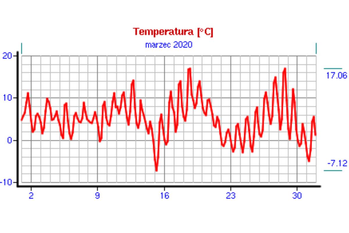 Do opisywanych różnic doprowadził przebieg pogody. Spójrzmy na temperatury w lutym i marcu w 2020 i 2021 roku. Jak widać w lutym tego roku, przez większą część miesiąca panowała temperatura poniżej zera. W ubiegłym roku było to zaledwie pięć dni w miesiącu. Nie inaczej jest w przypadku marca 2020 roku. Nawet bez dokładnej analizy danych widać, że mieliśmy do czynienia z wyższymi temperaturami.