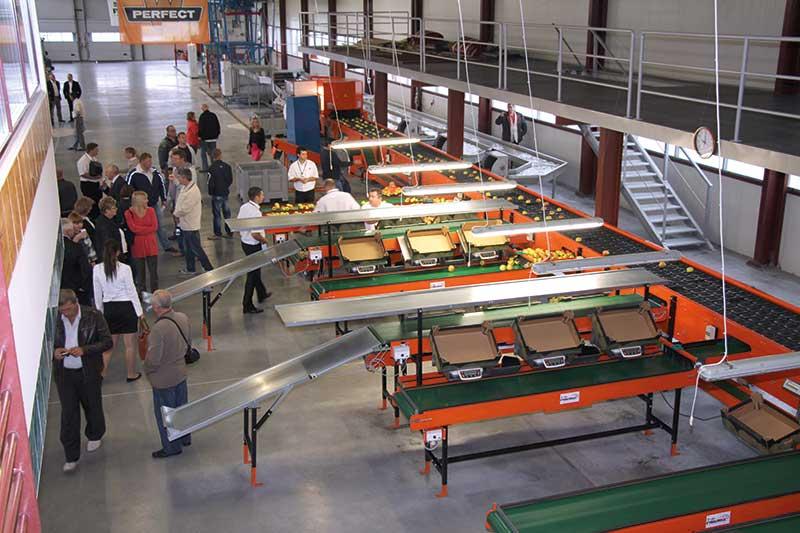 Grupa Sadowniczo-Warzywnicza „Złoty Sad” Sp. z o.o. w Samborcu rozpoczęła budowę obiektu magazynowo-przechowalniczo-sortowniczego w 2012 r., a już w sezonie 2013/2014 są w nim przechowywane jabłka. Pojemność komór chłodniczych w technologii ULO wynosi 5 tys. ton. W ofercie grupy dominują jabłka, ponadto są w niej gruszki, śliwki, wiśnie i czereśnie. Poprzez grupę sprzedawane są też niewielkie ilości warzyw – kapusta głowiasta biała, kapusta pekińska i pomidory. W obiekcie zamontowana jest na razie jedna linia do sortowania owoców Greefa – Combisort, wyposażona w stoły do pakowania firmy Longobardi (fot. 5). Planujemy zakupić jeszcze 3 takie linie. Jedna z nich, Geosort, będzie wyposażona w wodny rozładunek oraz 20 kanałów wodnych i przeznaczona do wstępnego sortowania owoców. Dwie kolejne będą służyły do ich pakowania zgodnie z indywidualnym zapotrzebowaniem odbiorców – informował Witold Stefaniak, prezes zarządu grupy „Złoty Sad”.