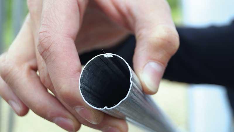 Firma Dach-Met Invest z Kępiny koło Grójca prezentowała tyczki sadownicze Stilmer wykonane z blachy ocynkowanej oraz typu alucynk. Okrągłe i lekkie tyczki o średnicy 27 mm i grubości ściany bocznej 0,5 mm można stosować w sadach lub w uprawie warzyw i owoców wymagających palikowania. Potrójne wzmocnienie wzdłużne (fot. 6) zwiększa wytrzymałość i zapobiega ich złamaniu lub deformowaniu. Zdaniem Jarosława Olejnika reprezentującego markę Stilmer, specjalnie zaprojektowana konstrukcja oraz materiał wykorzystywany do produkcji (alucynk) zwiększa trwałość tego produktu nawet do 60 lat.
