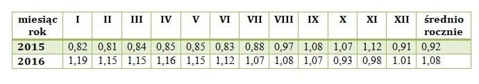 W tym dwuletnim okresie we wszystkich miesiącach zanotowano nadwyżkę finansową (różnica między ceną zbytu i kosztami produkcji) w produkcji soku zagęszczonego. Duże były różnice w poszczególnych miesiącach. Przy cenie skupu jabłek 0,32 zł/kg od 0,01 do 0,39 euro/kg. Są to średnie wartości. Inne mogą być wyniki w róznych miesiącach, czy w poszczególnych przetwórniach. Inaczej było w produkcji jabłek. Tylko w trzech ostatnich miesiącach roku 2015 ceny skupu pokryły koszty produkcji części jabłek. To są fakty o których warto wiedzieć.