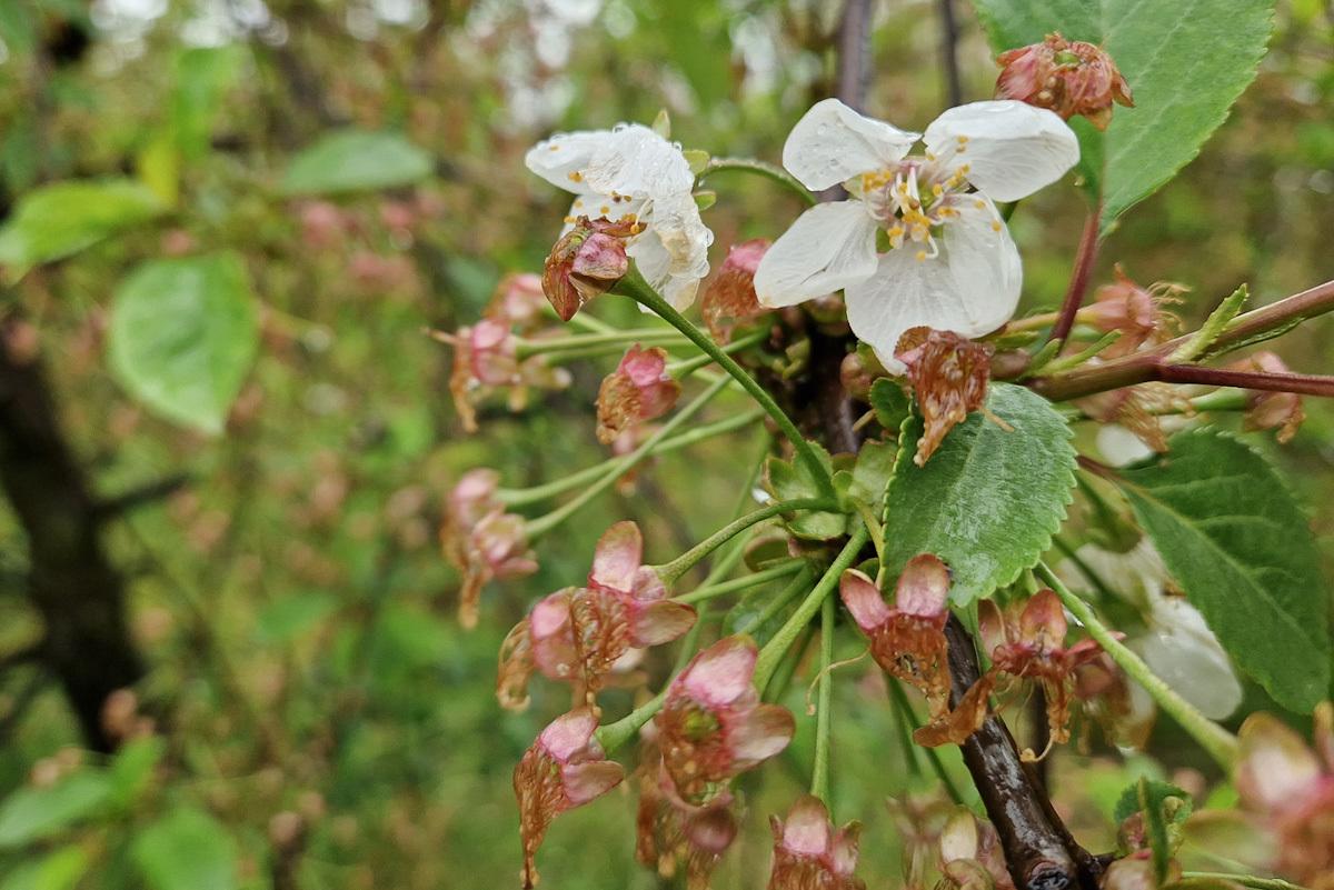 Niemniej, pierwsze uszkodzenia były widoczne już po spadkach temperatur z końca marca. – Nie pamiętam takiej wiosny – chłody, przymrozki i częste opady. Można kolokwialnie powiedzieć, że w tym roku sady wiśniowe są wyjątkowo „wymęczone” – dodaje sadownik.